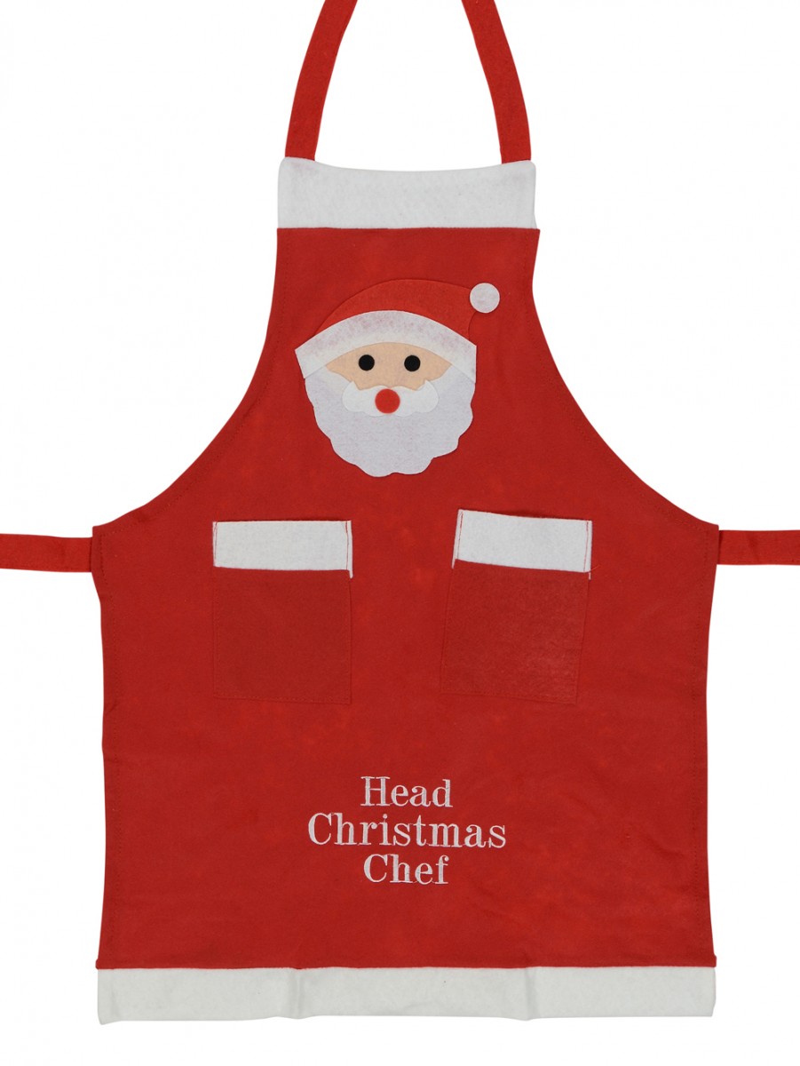 Cook your Christmas delicacies in style this Xmas while wearing our stylish looking Felt Head Christmas Chef Apron. This apron is made of felt material in the traditional Christmas colours of red and white. It has two handy pockets on the front and a stitched on Santa Claus head right above the pockets. It is functional and perfectly suitable for the season.
