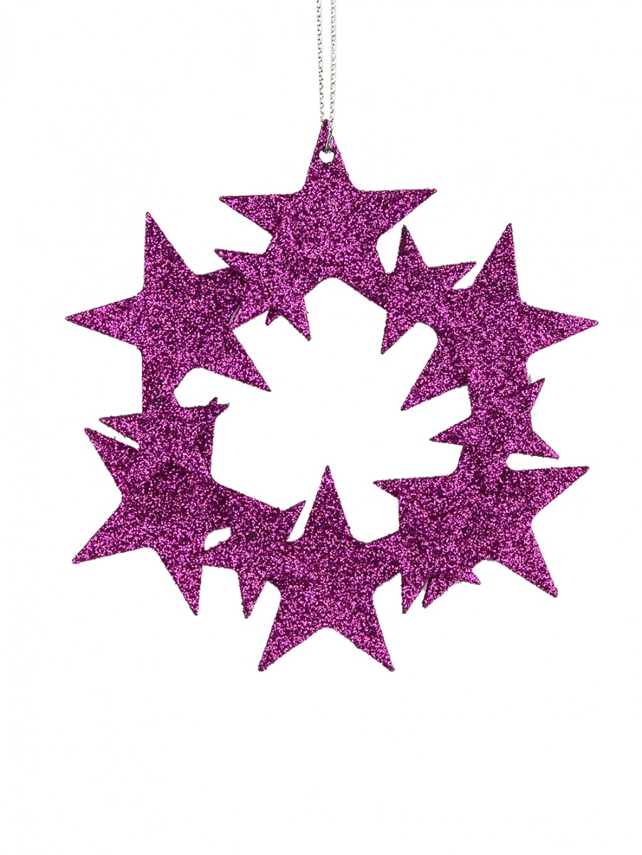 Full of whimsical charm, this spectacular fuchsia glittered star wreath hanging decoration cannot wait to embellish your beloved Xmas tree or your many Christmas crafts, display scenes, and decorative projects! Made by layering small and large fuchsia glittered stars, this is a visual delight and has a metal chain through its top star's eyelet for easy hanging and displaying as you wish.