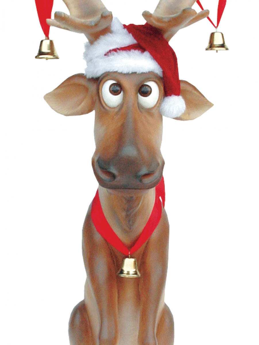 Add a touch of whimsy to your holiday décor with our Large Funny Sitting Reindeer ornament, complete with a festive Christmas hat, ribbon, and jingling bells. Crafted from durable Polyresin, this freestanding ornament is built to last, ensuring it can withstand the festive season's hustle and bustle. Standing at an impressive 1.4 meters tall, with dimensions measuring 66cm x 47cm, this comical reindeer is sure to become the focal point of your Christmas display. Its detachable antlers make storage a breeze, adding convenience to its charming appeal.