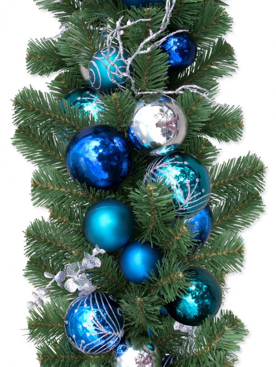 Christmas garland adds that extra special touch to Christmas trees regardless of their size, style and shape. They come in many varieties from thin and metal to thick and knit. This Pre-Decorated Garland is just one example of the varieties of garland that's available on the Christmas Warehouse site. It consists of round blue and silver baubles of varying sizes and finishes that are attached to silver glitter twigs. The garland already comes decorated, so all you have to do is unpack it and lay it on your tree for the final finishing touch of elegance. Whether you have a tree decorated in multi-colored décor or one that's silver or blue, the garland will look like an exquisite work of art. Measuring 2.7 metres in length, it will ideally fit on small to medium sized trees. It's everything you could want in decorative garland ? beautiful, luxurious, inexpensive and easy to use.
