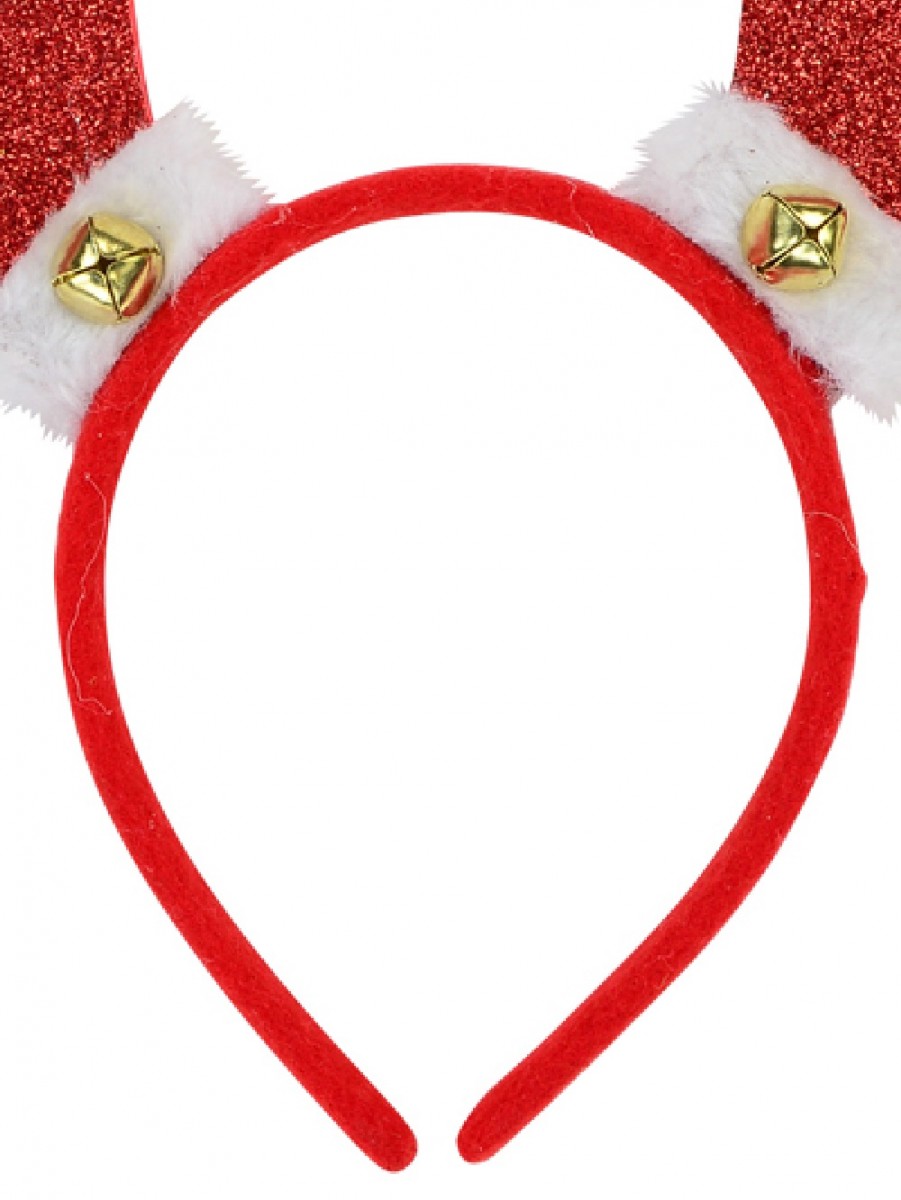 The Glittered Rubber Reindeer Antlers With Bell & Fluffy Cuff is a specially crafted Christmas costume which you and all of your family members can wear in celebration of Xmas. It is made in a single size that fits most and can even expand to fit those on the plus size. It is crafted like the antlers of reindeers with Christmas bells attached to the base of the antlers. The antlers are in the red vivid colour of Christmas with red glitters adorning them. At the base of the antlers are white, fluffy faux fur cuffs on which are pinned one gold coloured bell on each cuff. Children especially would love it!