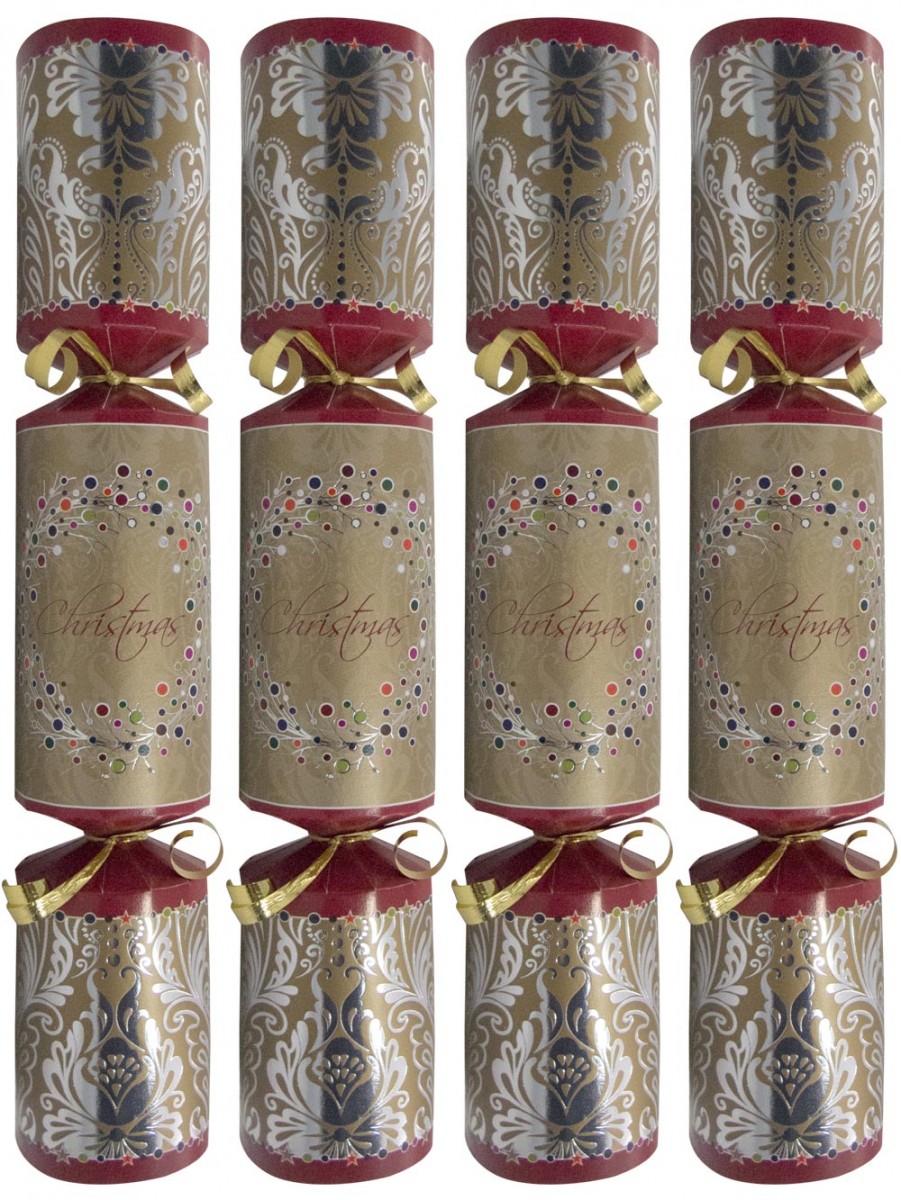 When you're preparing for your Christmas shindig, don't forget the Christmas crackers! These Gold & Burgundy With Wreath Bon Bons are going to make a lovely addition to your holiday soiree. In each beautifully decorated box, there are twelve Bon Bons all of the same variety. The Gold & Burgundy With Wreath Bon Bons are decorated with burgundy in a multi-colour dotted silver metallic wreath with silver metallic pattern and burgundy border design. All have a "Christmas" saying written in elaborate script on each and are tied at either end with a gold ribbon. Whether you give them as a hostess gift or hand them out as party favors to your guests, they are sure to impress. It's no wonder they've been a Christmas tradition for more than 150 years! Want even more varieties of Bon Bons? Check out the Christmas Warehouse site for additional stunning versions.