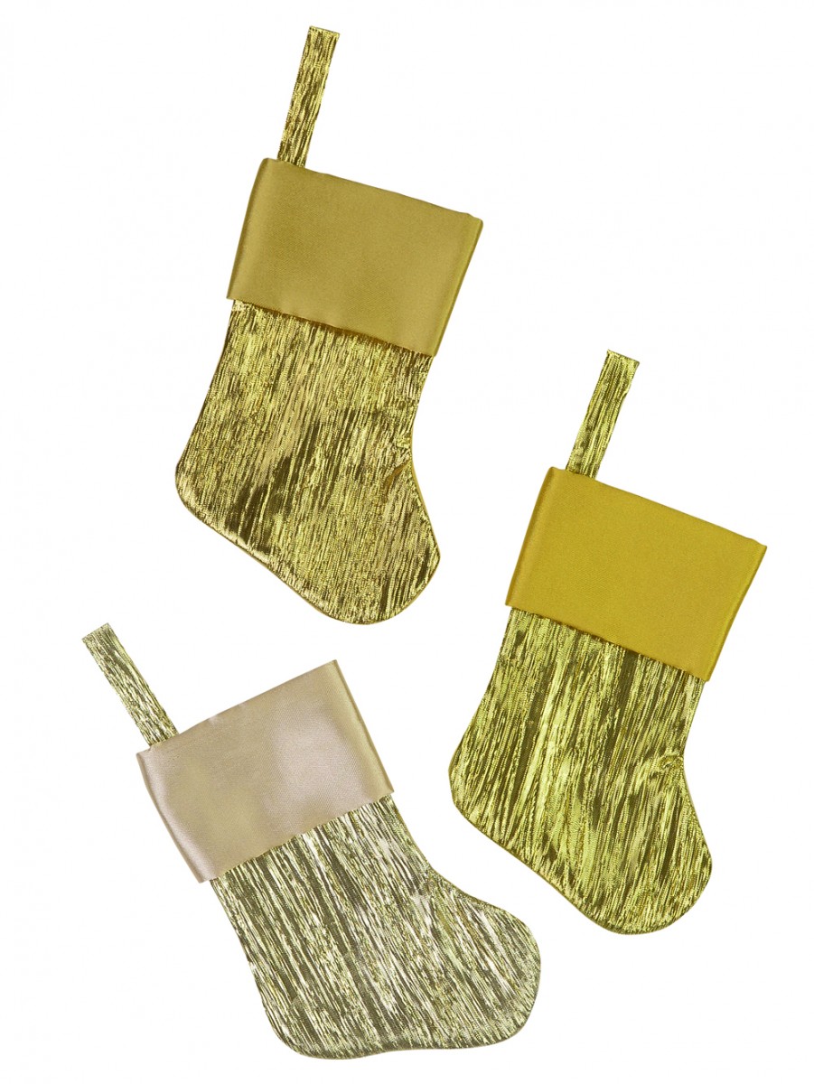 Our beautiful pack of six pleated mini stockings come in three colours - two in shades of gold and one in champagne colour with satin cuffs making it the perfect addition to Christmas Eve. Handmade from luxurious shimmering fabric with quality craftsmanship, this can be a perfect Christmas gift since it ships worldwide and will be treasured for years to come.
