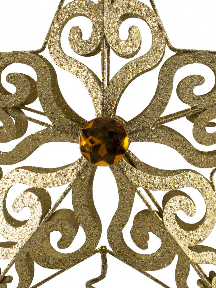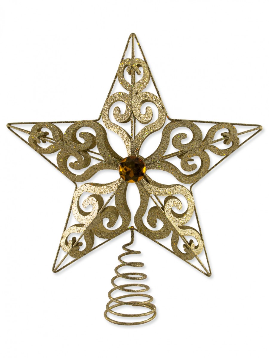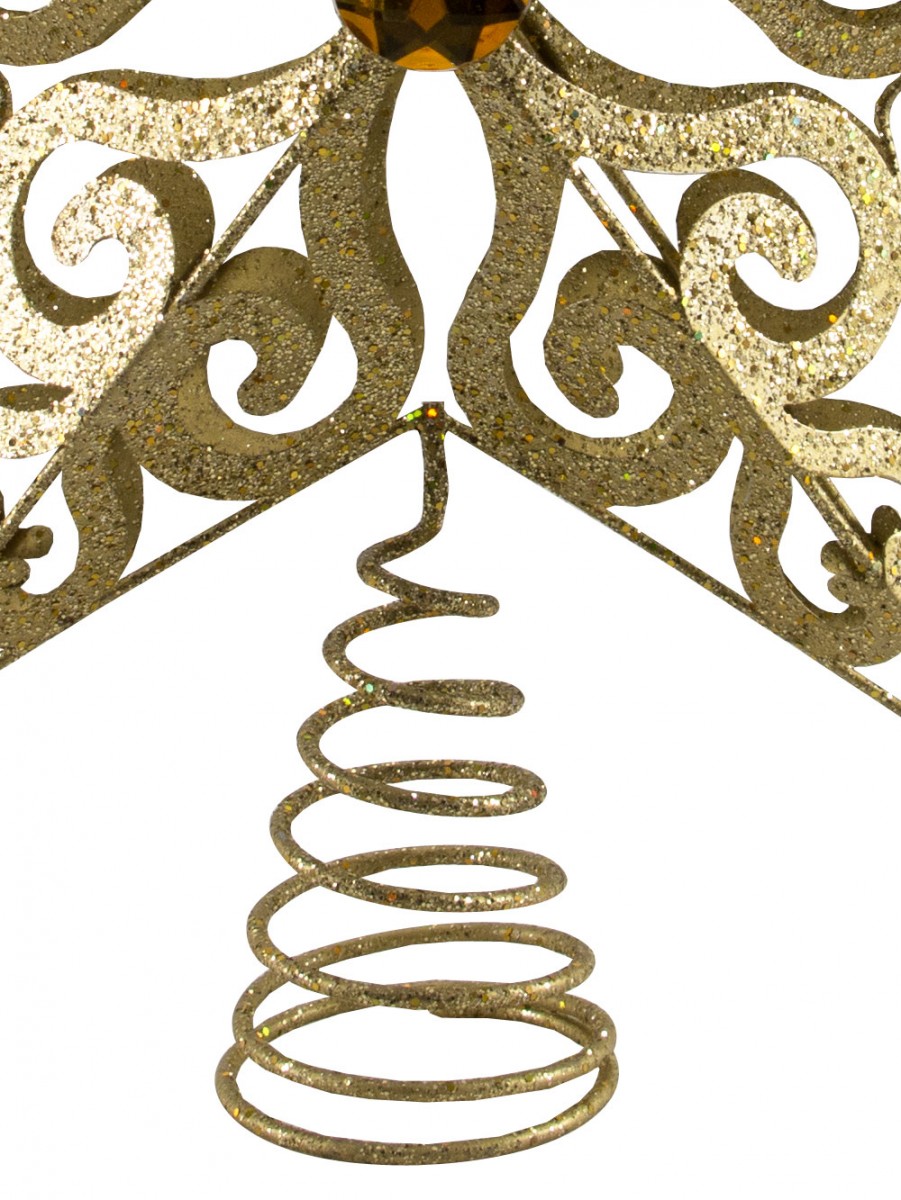 The tree topper is the quintessential piece of Christmas decor next to the tree itself. It's handed down from generation to generation and is protected more so than even many ornaments. It holds a special place in the hearts of many, which means the topper needs to be simply remarkable to earn the very important spot at the top. This Gold Filigree 3d Star Tree Topper is one that deserves the prime space. It consists of a gold wire star surrounding a 3D gold filigree design and a gold jewel at the center. A gold coil at the bottom allows the star to sit snugly in place atop the tree without causing worry that it's going to fall. It's the ideal final piece of decor to add whether you're decorating your tree in a metallic color scheme or you're going to the multi-colored route. Need decorations for your Christmas tree? Christmas Warehouse has everything you need from baubles to garland so you can achieve the perfect look.