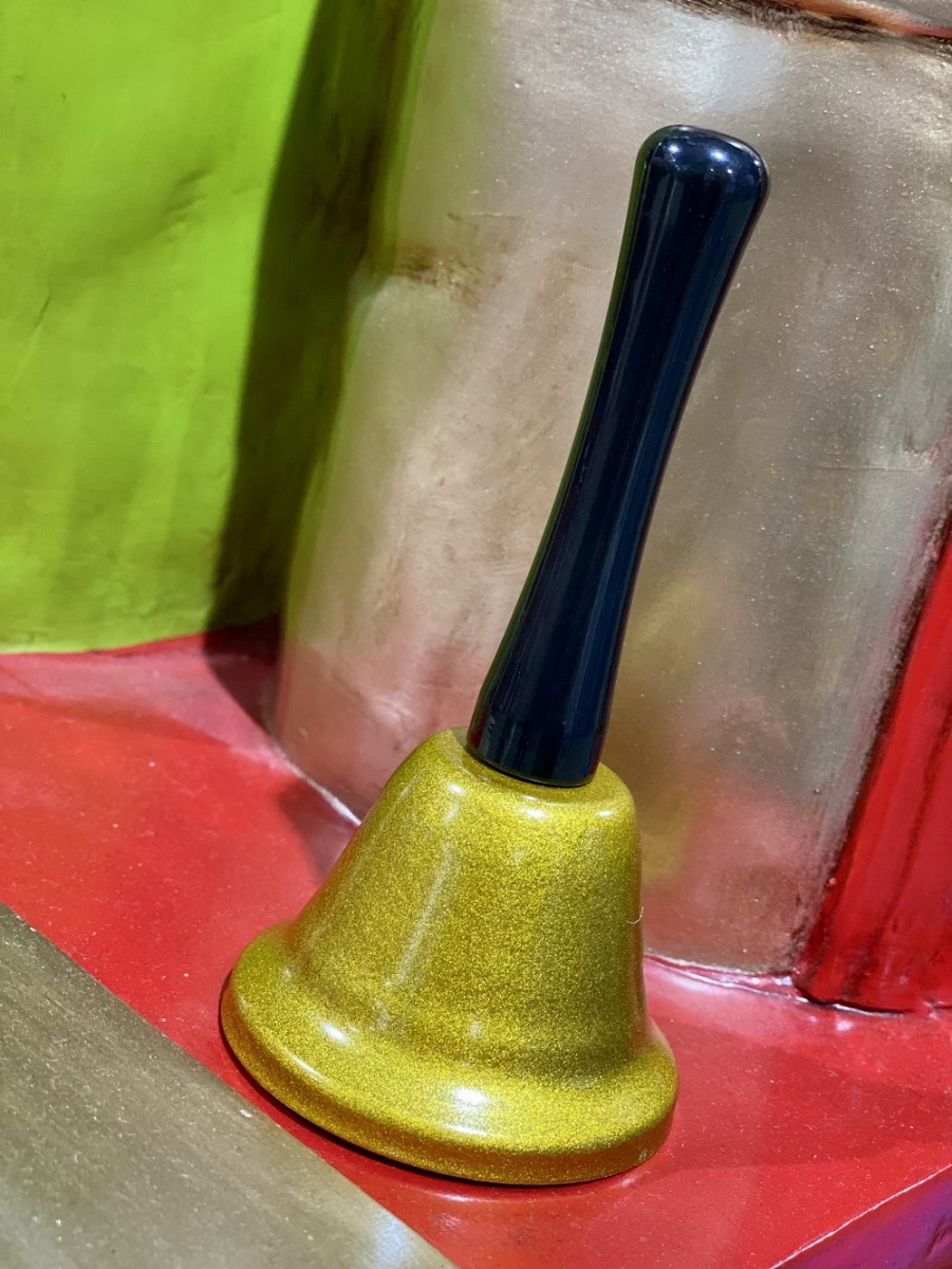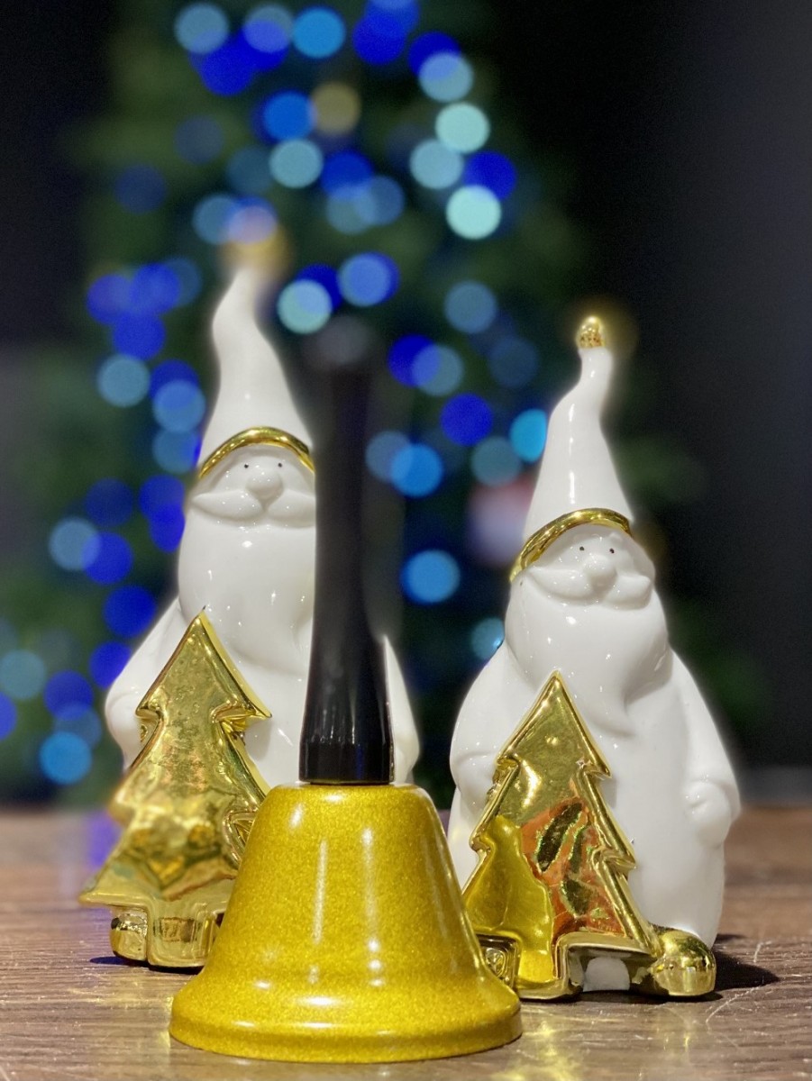 • Functioning gold Santa bell with black handle