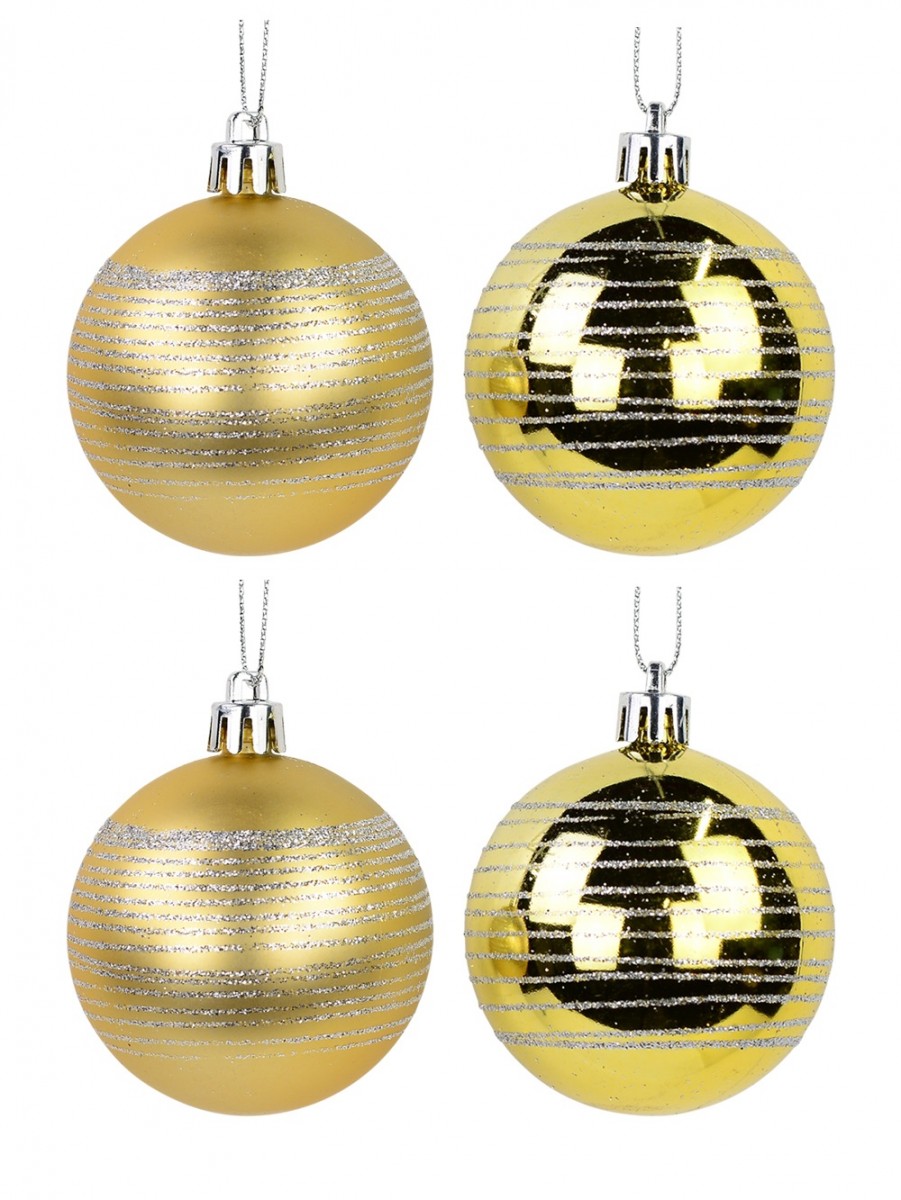 Decorate your tree in style with this set of 12 gold baubles with silver glitter stripes that include two different baubles in matte and gloss. Their glittery, glossy and matte finishes will bring a nostalgic feeling to your home and allow you to create an elegant, festive look for your tree.
