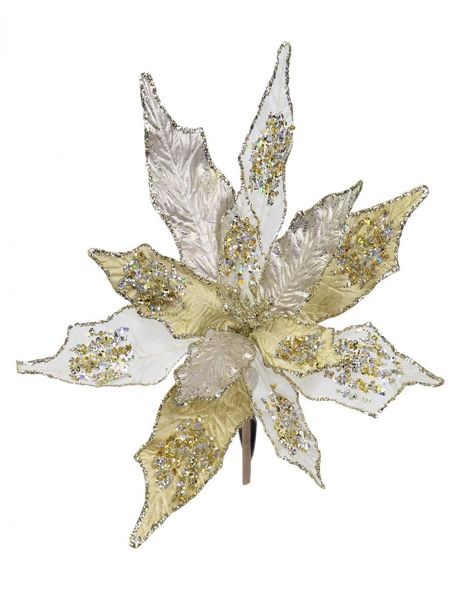 If you're someone who often bakes or cooks plenty of goodies for the holidays, and you're not about putting them in plain packaging, you might find that the Gold & Platinum Poinsettia Clip On with Pick will come in handy this season. Even using one of these decorative pieces can really change the overall look of your already thoughtful and generous present.