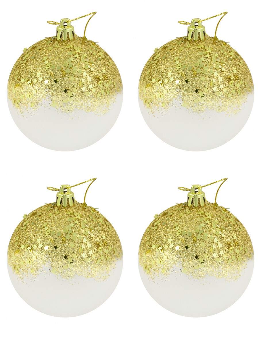 In addition to putting these baubles on your tree, other decorations you might want to use could include gold and white tinsel garland, white lights, small gold bells, and ornaments in the shape of small gold stars. You could also use glittered or plain black bows or those that have white or gold patterns on black. A gold star tree topper can be a final piece of decor that brings it all together. If you're planning on putting gifts under the tree ahead of Christmas Day, you could use them as part of the decorations and coordinate the packaging with the colours of the tree by using wrapping paper or gift bags that are gold, white, and black.