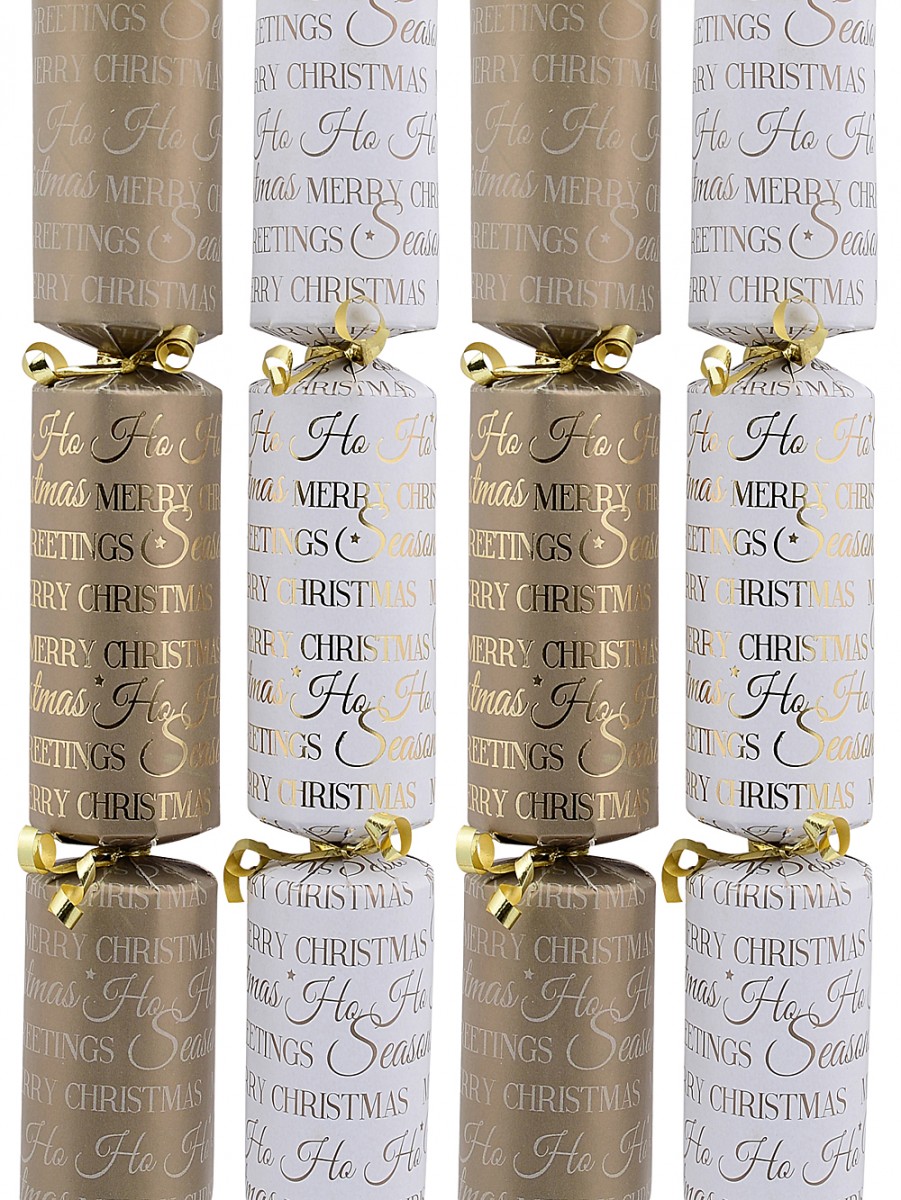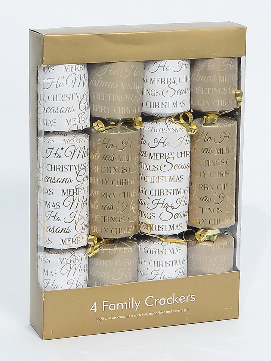 Make the right Christmas shopping decision when you choose to buy as many of this Gold & White With Shiny Gold Font Christmas Cracker Bon Bons as you can while we still have it in stock. It is sold as a pack of four and packaged within a lovely gift box that has a transparent front. Each of these four crackers is adorably ornamented with the use of resplendent gold coloured stylish fonts.