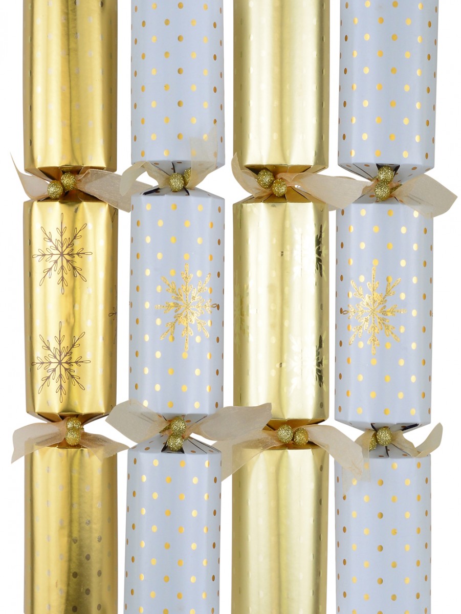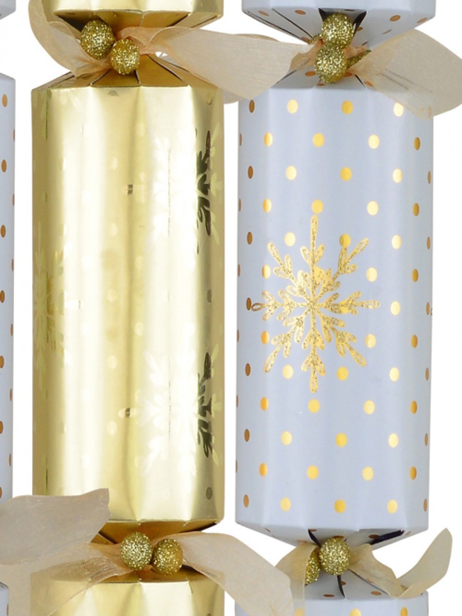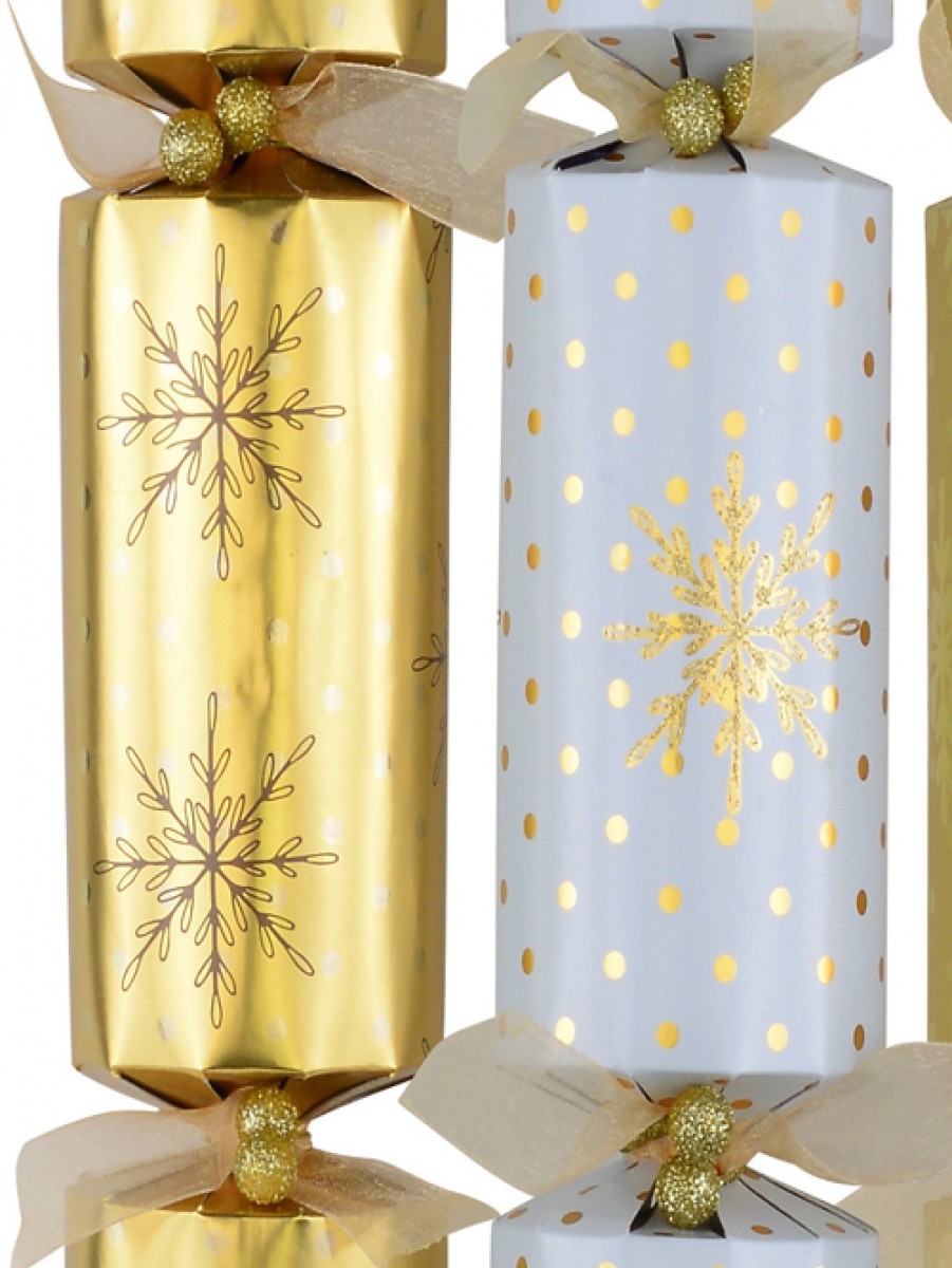Gold & White With Snowflakes & Dots Christmas Cracker Bon Bons - 6 X 36cm