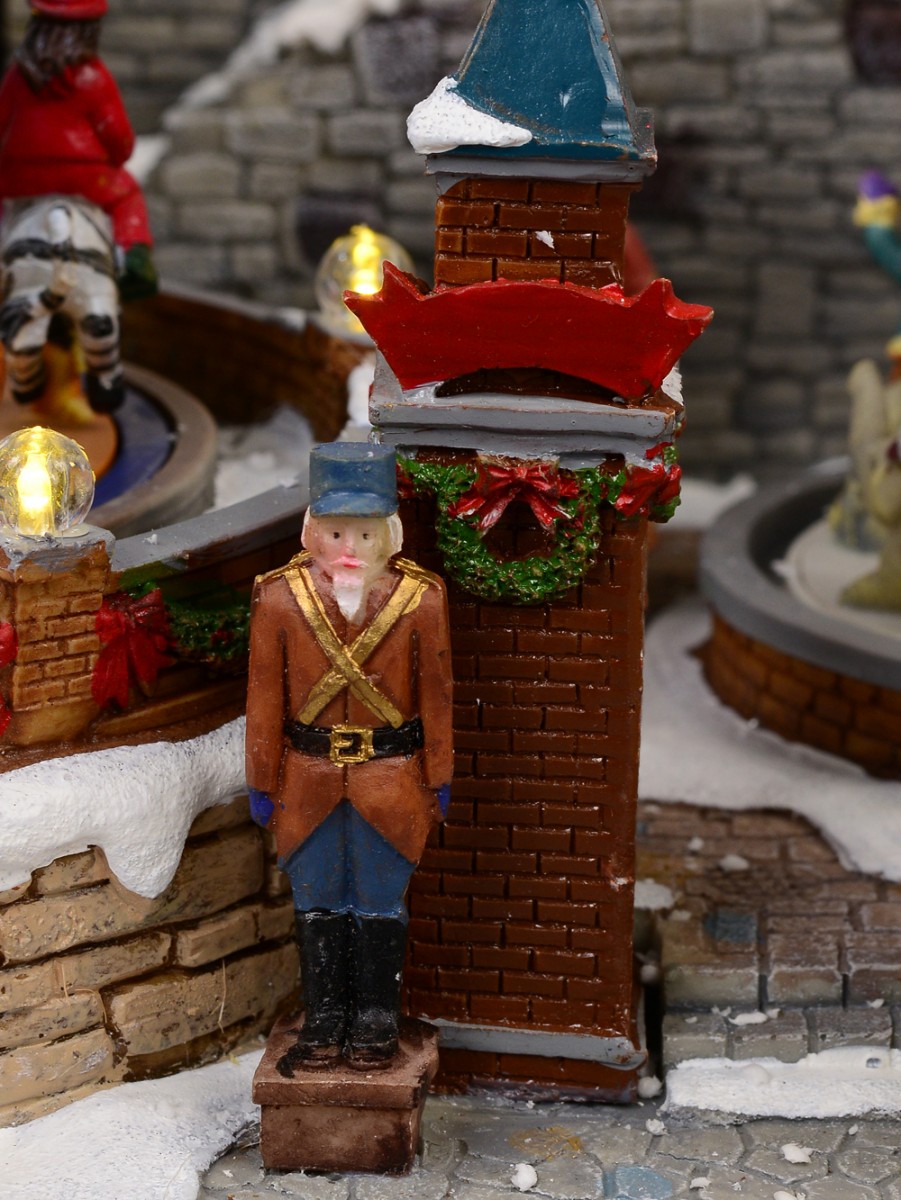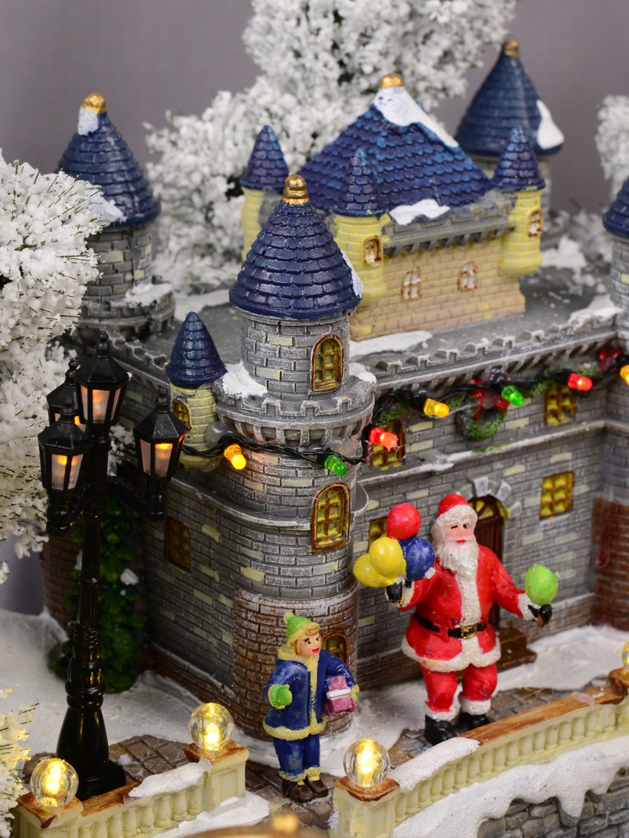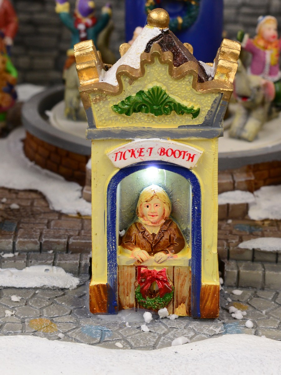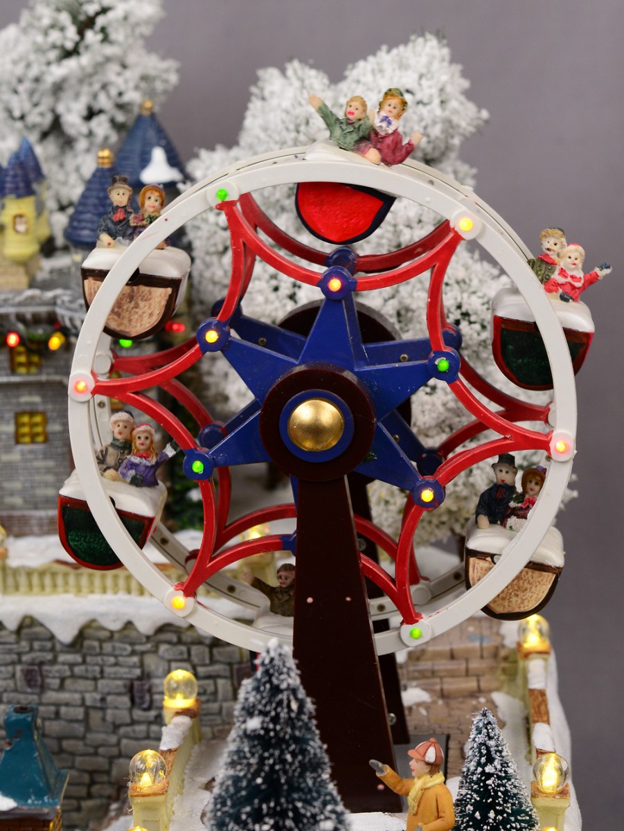 The Illuminated, Animated & Musical Grand Christmas Winter Fun Park Scene is a decor enhancing Christmas themed animation which showcases a fun park covered in patches of snowfall. Santa is seen standing in front of the main building beside a boy while Santa holds balloons in his hands and the boy carries a gift pack in his hand. Several other children are seen having fun in various locations around the park. As is expected, the animated fun park is ornamented in Christmas colours of red, gold, white and green in combination with other alluring colours. This savvy Christmas colours assortment is why this ornament would blend in perfectly with your Christmas decor.