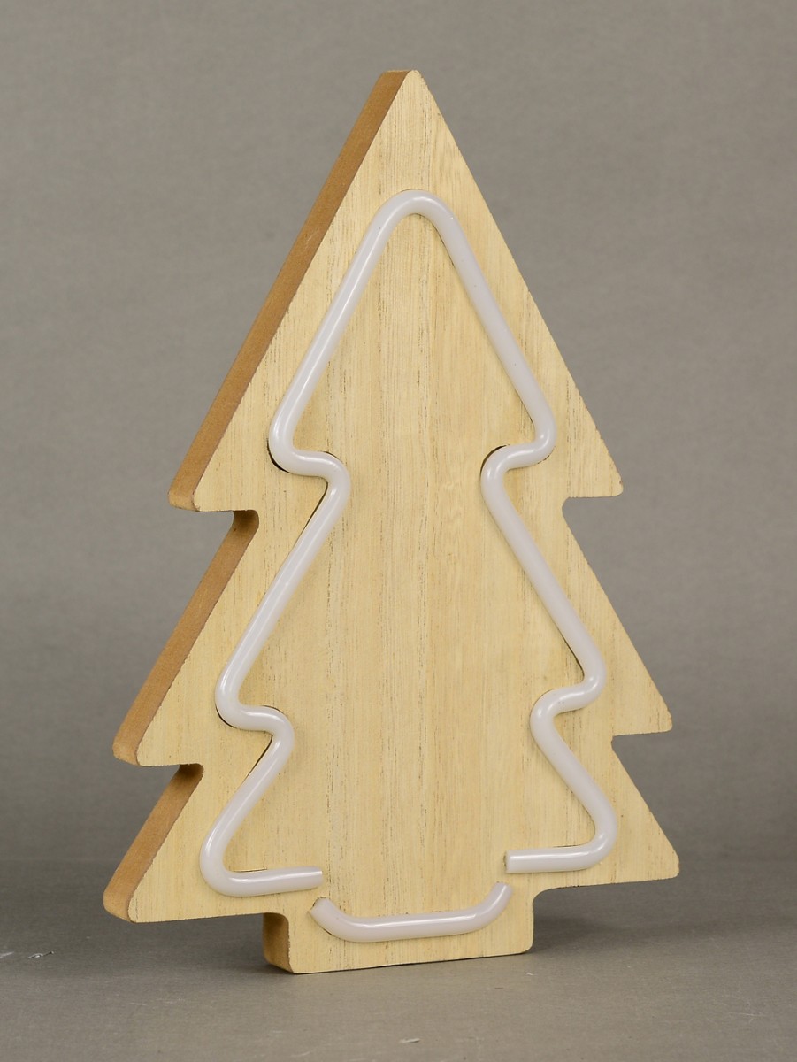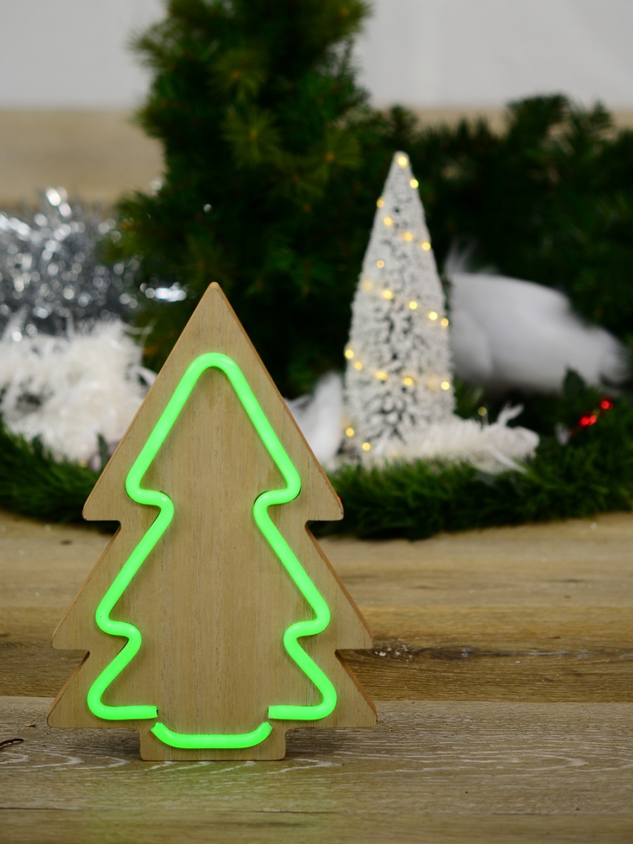The use of Christmas trees as part of the traditional Christmas decoration items is an ancient practice said to have originated amongst the Egyptians and Romans. The popular choice of Christmas tree has been and remains the coniferous species like pines, fir and spruce. It is from this long standing tradition that this craftily designed LED Green Neon Tube Light On Wooden Tree Silhouette derives its inspiration.