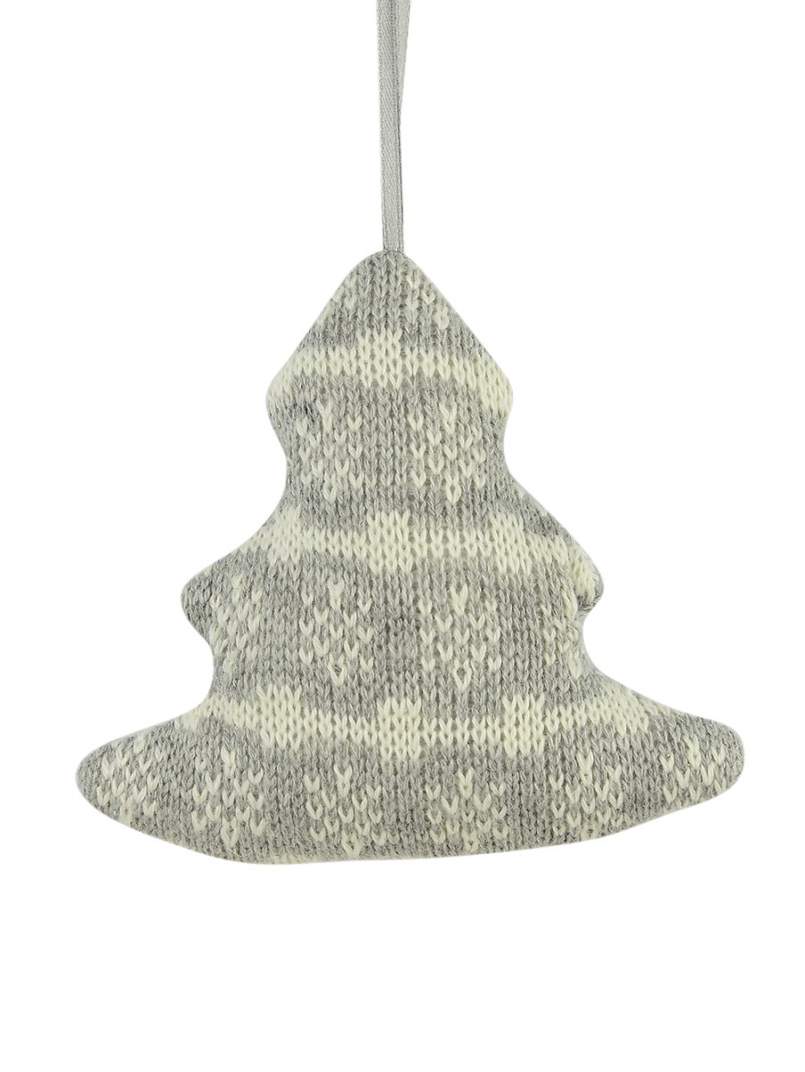 This knitted fabric tree with a white snowflake pattern on grey knitted fabric will add handmade cheer to the tree branches and simple hominess to garlands and wreaths. Beyond just being the traditional ornament, it can even add some cozy charm to your gift wrapping this year by adorning your goody bags or gift packages.