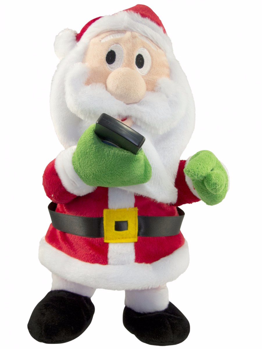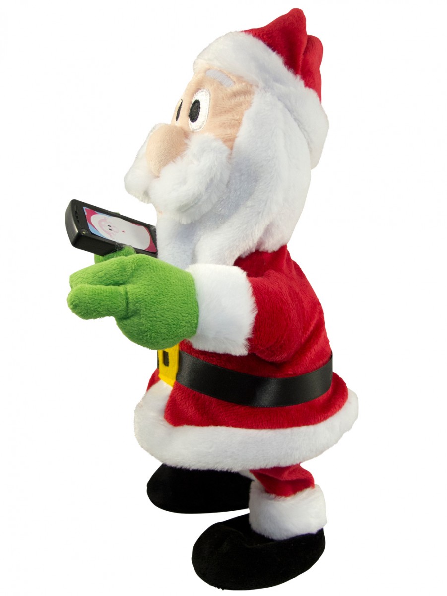 Santa wearing the traditional red hat and red fur coat with white lining with a phone in its hand as if it is taking a selfie forms the entire get up of this showpiece. A red buckle on its belt, and green gloves and socks on its hand and legs form its other accessories. As funny is it�s look, the more fun you will get it when a push button activated on its left hand will start singing �Let Me Take a Selfie� in an anime voice. The dimension of this gift is 17 cm which makes it easy for you to hold in a grip. You only have to buy the batteries from the outside. Indeed a superb Christmas gift.
