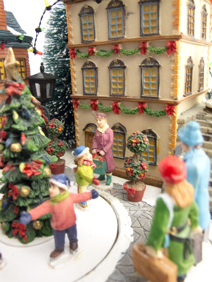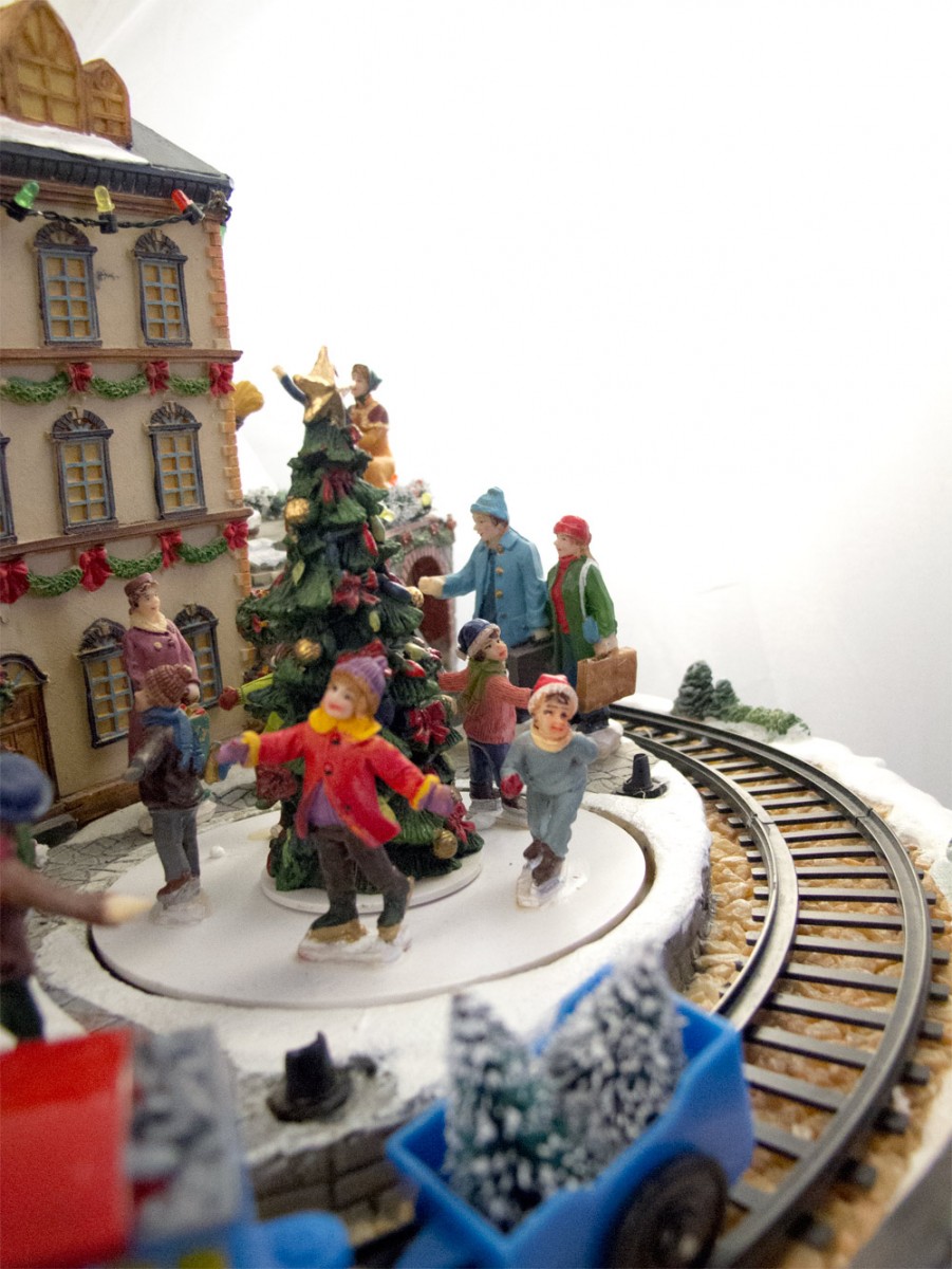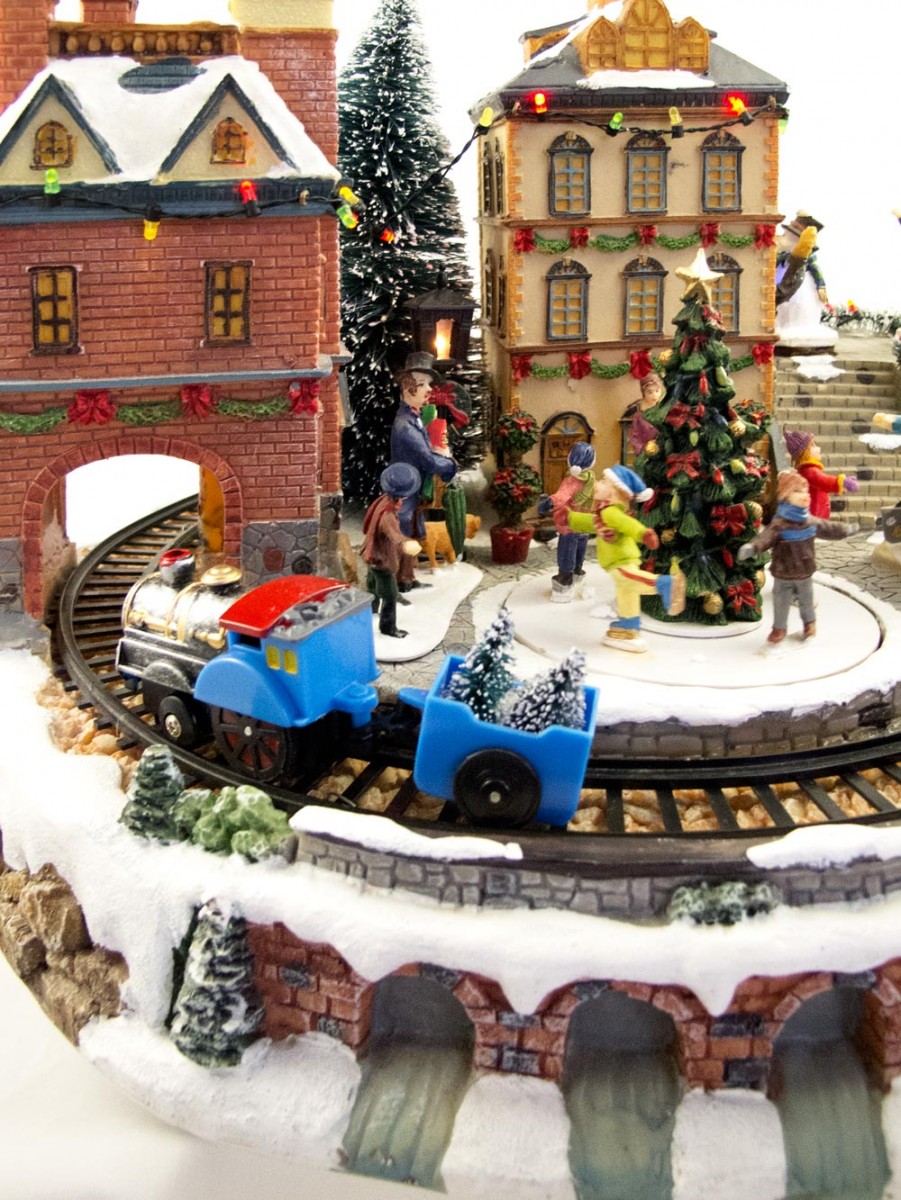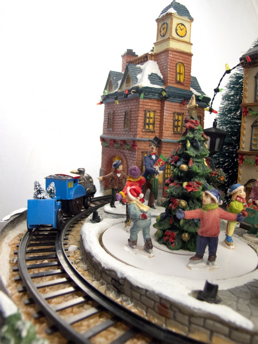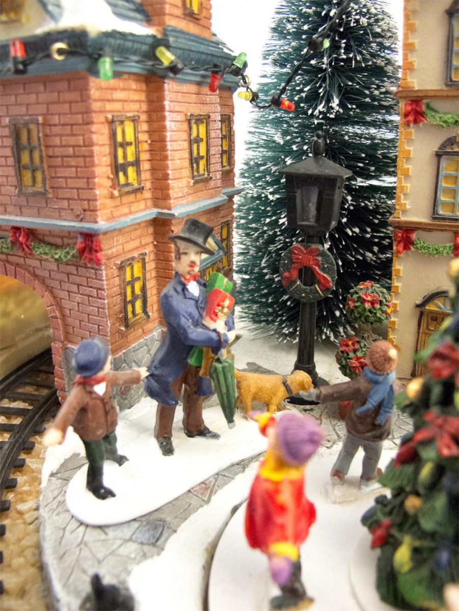 This spectacular illuminated Christmas holiday scene is filled with lovingly crafted tiny details that will delight young and old alike. The grand town square scene includes a hotel station and working train and is made from high quality polyresin. Animation vignettes include local townspeople rotating, LED illuminated snowman on a bridge, and a tree with dancers in town square. Moving train is operated by one AAA battery (sold separately). Turn the Christmas music on and off with a simple switch to complete the holiday wonderland. Scene is mains operated and measures 40 cm x 40 cm x 27 cm. This product complies with all Australian safety & performance requirements.