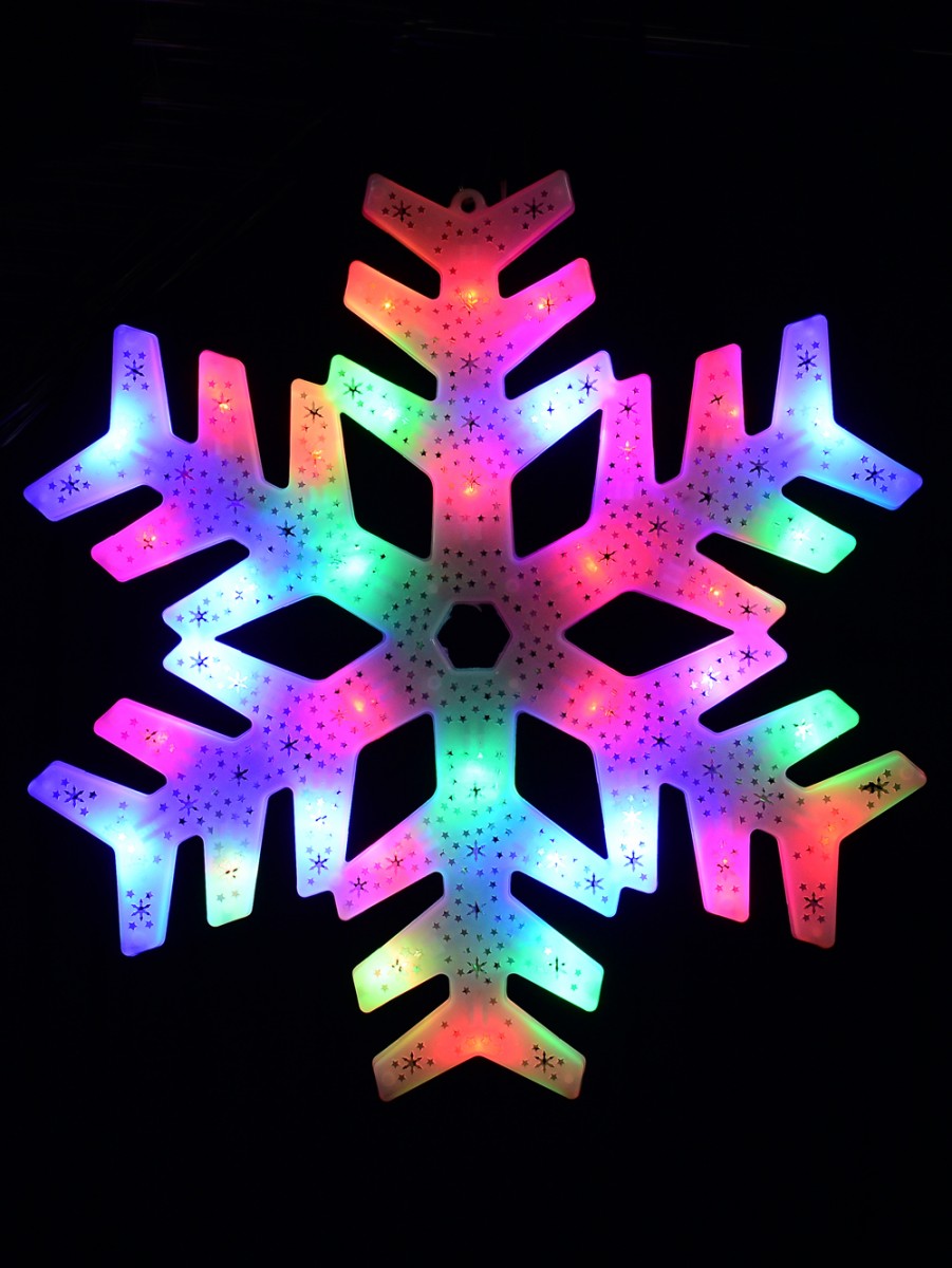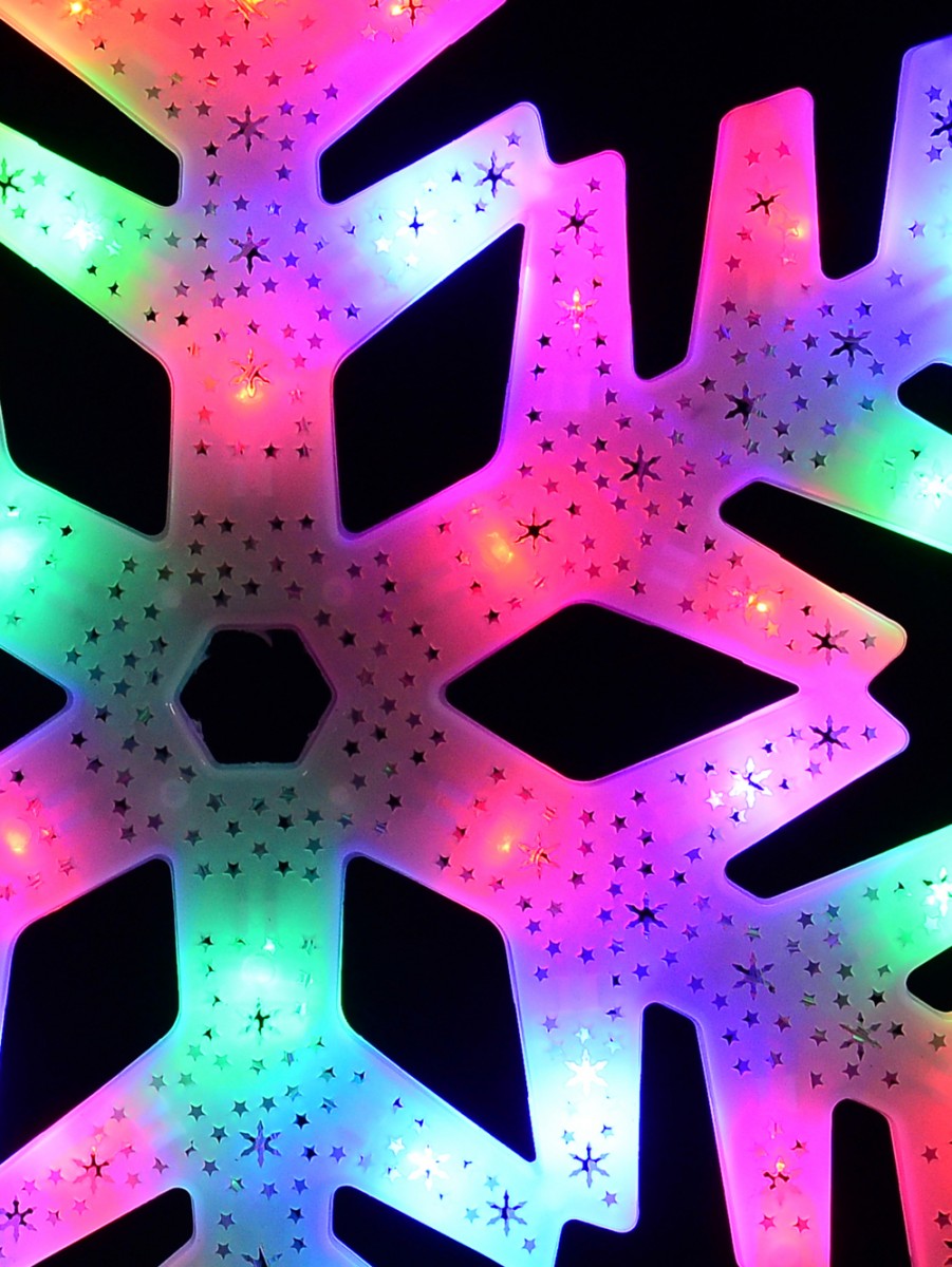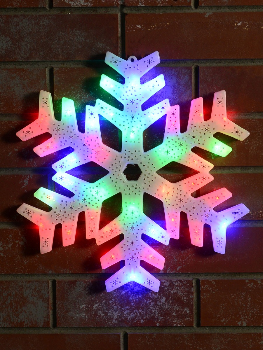 Have you ever wished you could introduce the beauty of snowflakes into your interior and exterior Christmas decorations? Good news! Now you can! Buy this cool glowing Flashing Multi Colour Snowflake Silhouette and experience the combined beauty of snowflakes and stars in your Christmas decoration. This Christmas light is formed in shapely imitation of snowflakes and has several hundreds of stars of varying sizes cut into the body in an intricately ornate pattern. Like the star decorative pattern which graces the body, this Christmas light produces a twinkling glow in several colours of red, purple, green, and blue. It is perfect for use on your Christmas tree, walls and other parts of the house.
