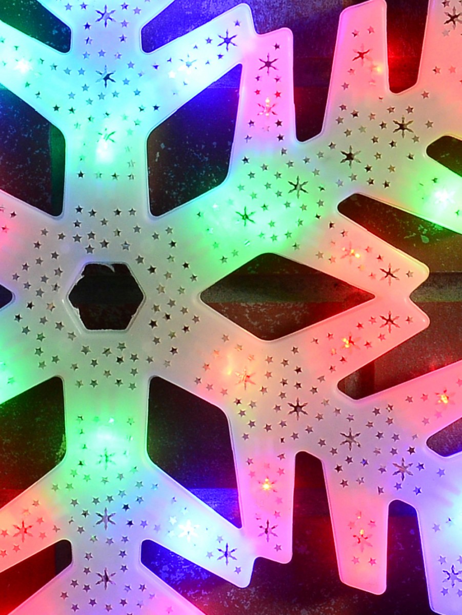 Snowfall is a natural phenomenon that adds a touch of natural beauty to our Christmas decoration and celebration. This Flashing Multi Colour Snowflake Silhouette is a tastefully crafted Christmas light infused with the look, beauty and shapeliness of snowflakes. It has flashing light function which gives charm to the polychromatic hue and cut-in star designs.