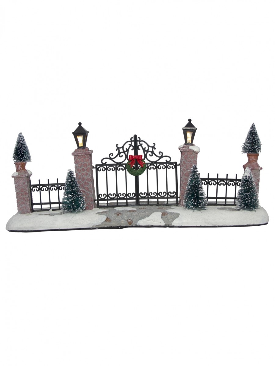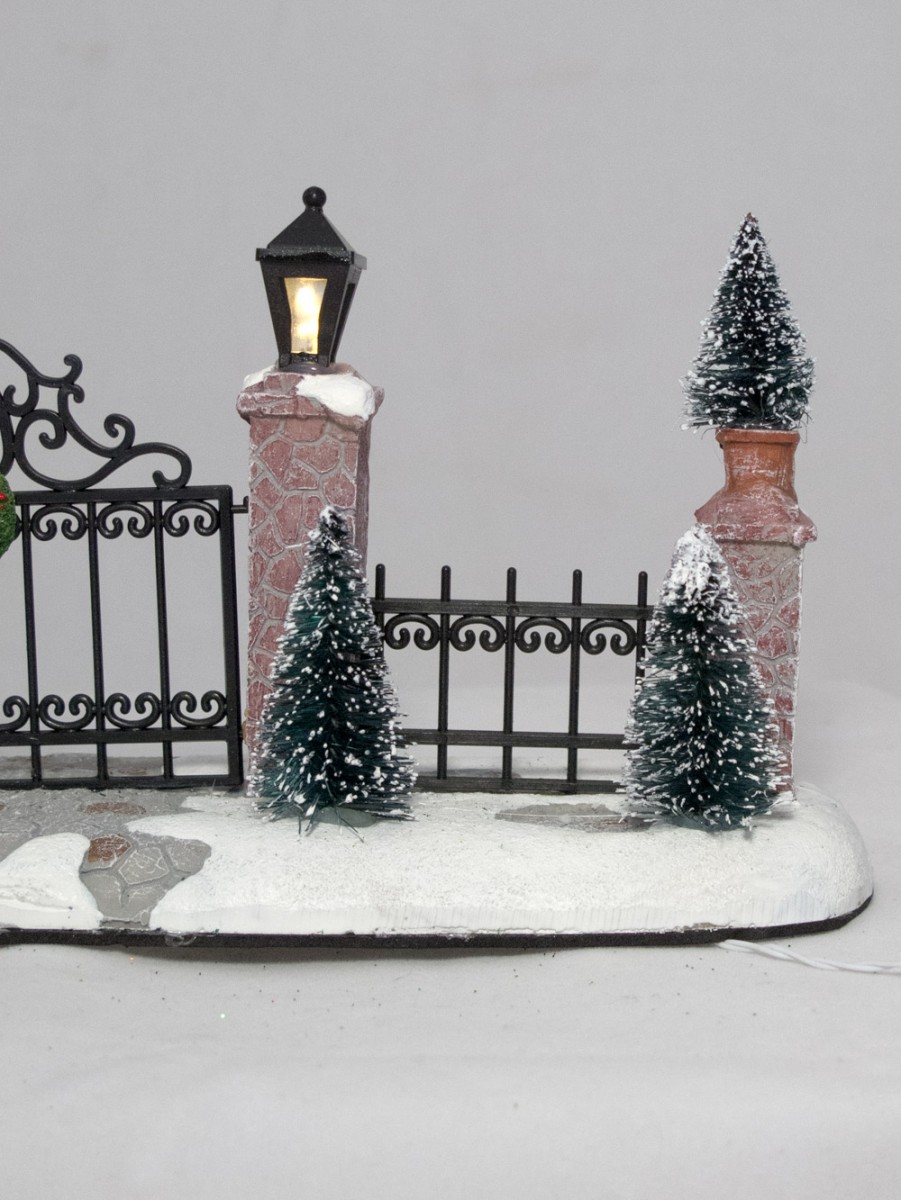 This decoration is ideal for those seeking to create the feeling of a classic Christmas. It is ideal for creating a magical Christmas scene with figurines and illuminated villages. It is battery operated and comes with its own Christmas wreath, snow tipped pine trees, two lit lanterns, all to the delight of the kids and the kids at heart