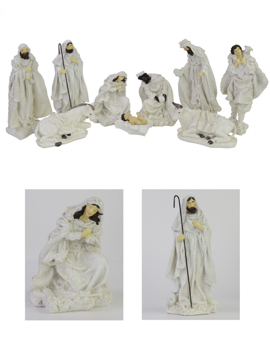 Ivory Colour Nativity Figurines Including Mary, Joseph & Jesus - 9 Piece Set