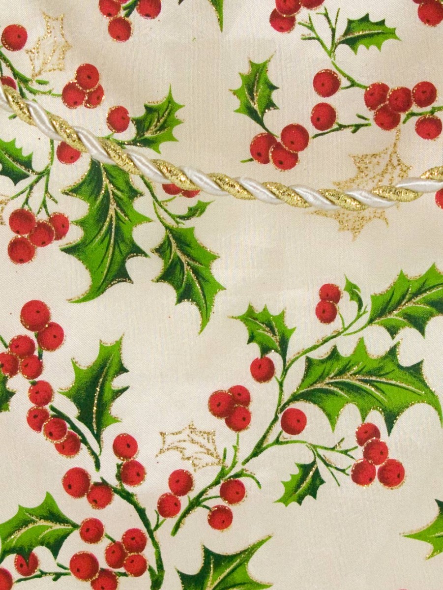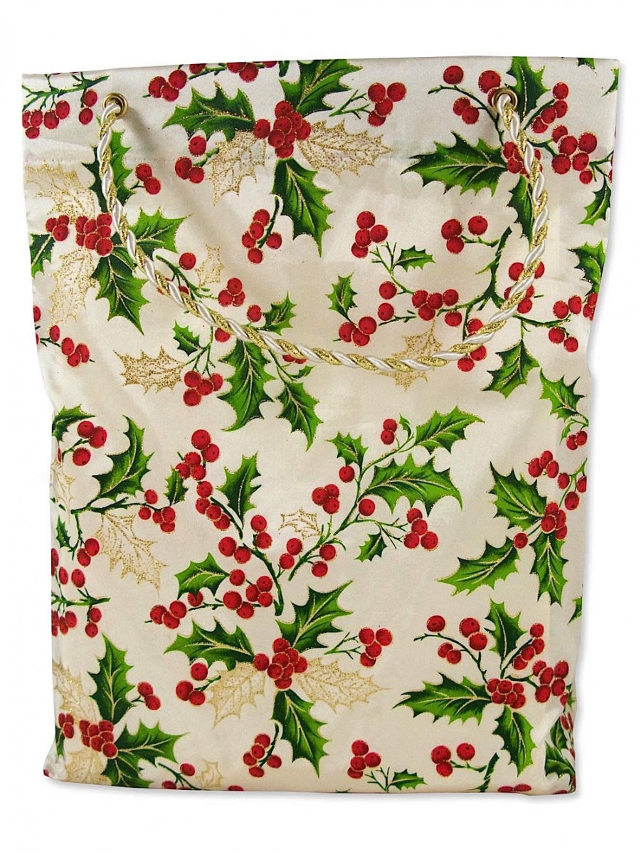 The ivory with green holly and red berry print gift bag is an old fashioned Christmastime print bedecked upon a convenient gift bag. Some small gifts call for being placed in an exquisite bag rather than being wrapped.