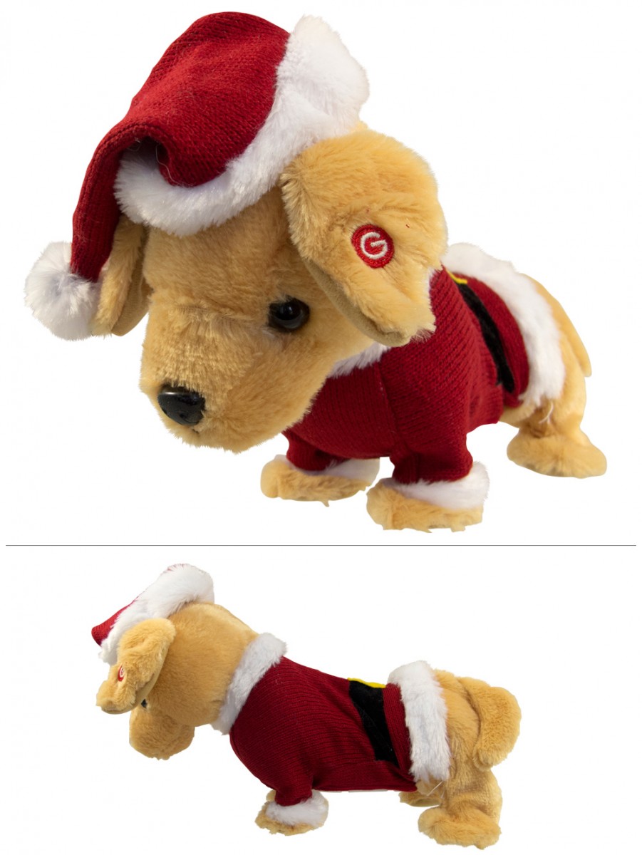 The Jingle Bell Dachshund Musical Animation measures 15cm x 32cm x 20cm, so he's a nifty size for the sideboard at home, a shop counter, or even on your desk at work. Think your own puppy is energetic? See this one go! He dances (fabulously) and belts out a fantastic version of the Christmas classic, Jingle Bells! The Jingle Bell Dachshund Musical Animation is button activated and battery operated so there's no need to worry about excess cables or cords. You could find a home for your animated puppy under the tree, on a sideboard at home, or maybe a shop counter at work. That will be one way to get everyone's attention! Christmas decorations and a stunning tree will always create a beautiful setting at Christmas, but for a little extra spark to the festivities, consider taking home the fun and fabulous animated Dog. He's just as cute as the real thing, but comes without barking or messes to clean up!