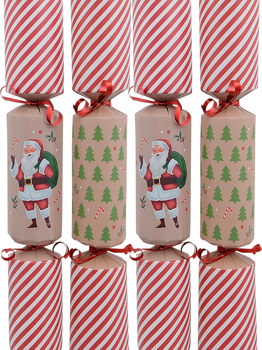Celebrate a fun filled jolly Christmas with your family members, friends, colleagues at work, neighbours at home, general acquaintances, and loved ones in general by sharing in the fun of opening this Jolly Santa & Christmas Trees On Brown Christmas Cracker Bon Bon. It is available for sale as a pack consisting of a dozen Christmas crackers.