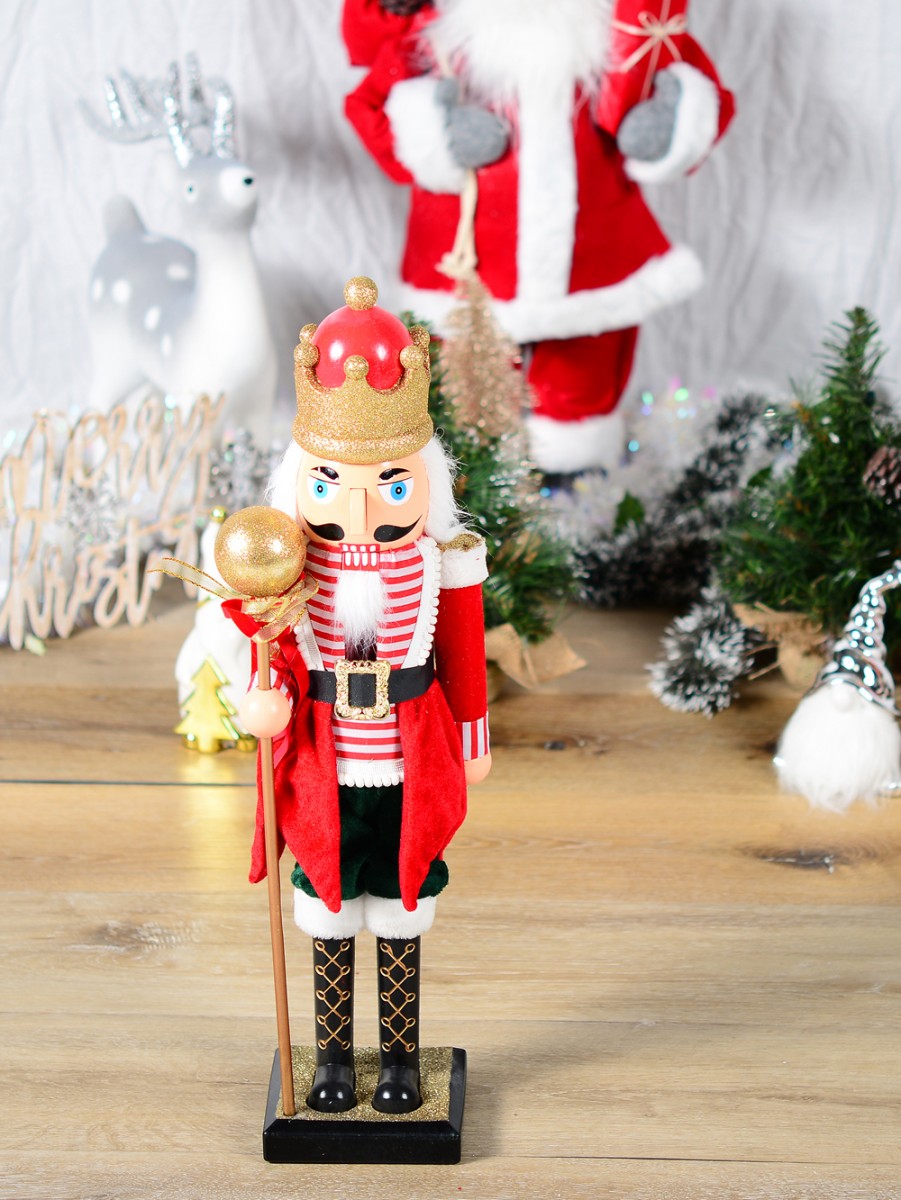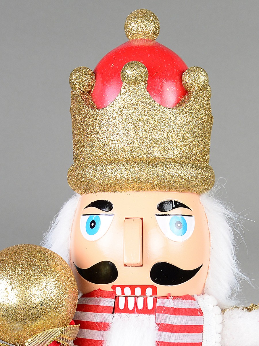 Charming, impressive and functional are words that perfectly describe Large Classic Christmas Nutcracker With Ball Staff Decorative Ornament. This Christmas ornament features an expressive face, piercing blue eyes with white faux hair and goatee, black brows and a moustache. Its dapper uniform with finished with heirloom quality accessories to further accentuate it. Not to mention its realistic appearance that completes the Christmas scene.