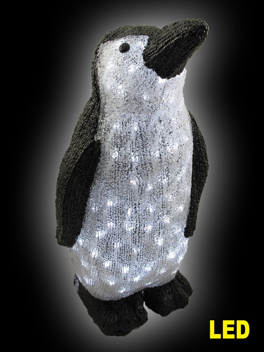 Crafted of a fine, textured acrylic material, this penguin is lit from within. The penguin is made up of clear and black acrylic to accent its beak and wings. Inside of the penguin, 100 LED bulbs are woven, illuminating the entire animal. LED bulbs are proven to shine more brightly than standard bulbs. In addition to their shine, LED bulbs are more energy efficient and have greater longevity. This penguin light display is suitable for both indoor and outdoor use. Measuring 22cm x 50cm x 22cm, it would work well standing on the floor of your home to greet your guests, or displayed on a table. You could place the penguin in your yard for a brilliant outdoor display. While the penguin is noticeable during the day, night time is when it really sparkles. Dim the lights and allow this penguin to light up your holiday party, or use it to impress passers-by as it glows against the night sky. The LED penguin is a great decorative item to stand alone, or to be used with other decorations. You could create your own North Pole scene with the LED polar bear and the LED reindeer made of the same materials. However you decide to use this penguin, it will surely shine on you and yours with cheery warmth.