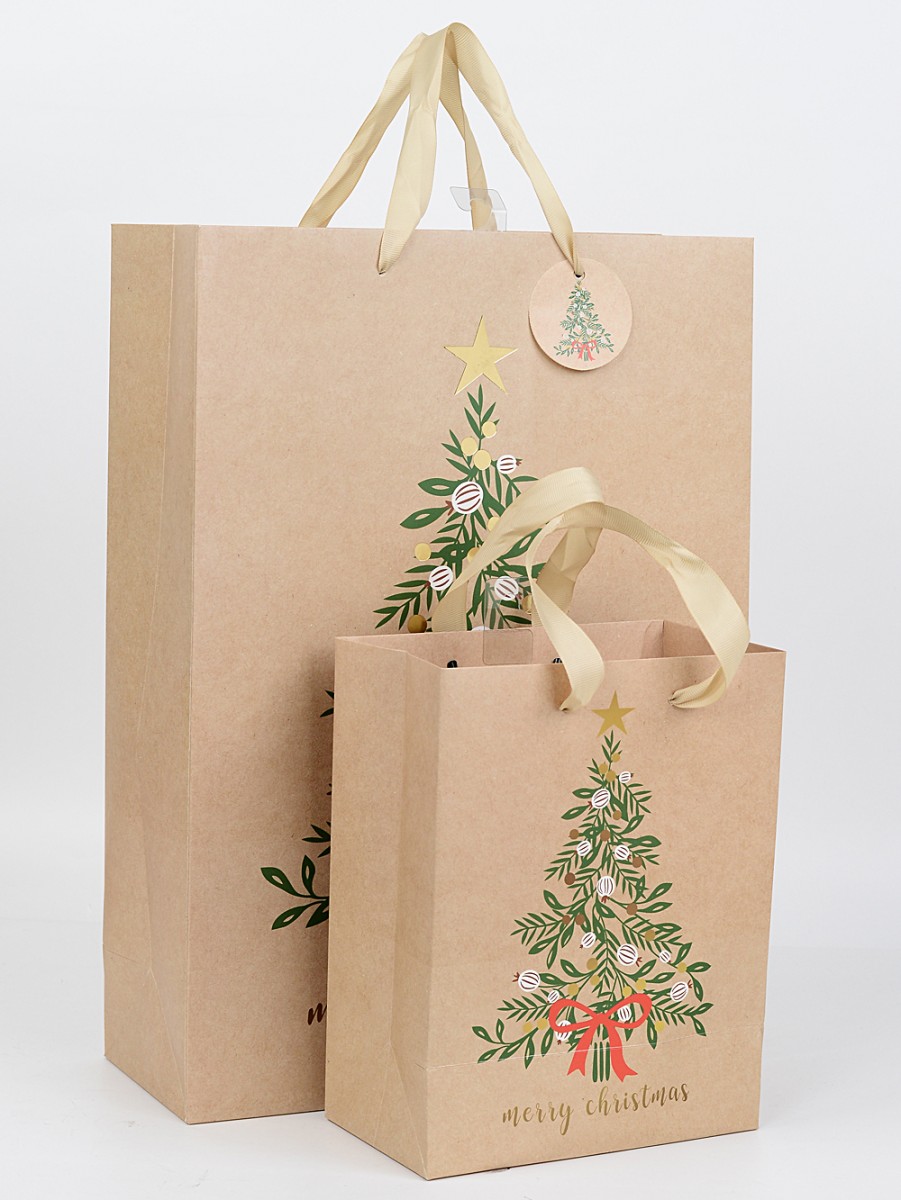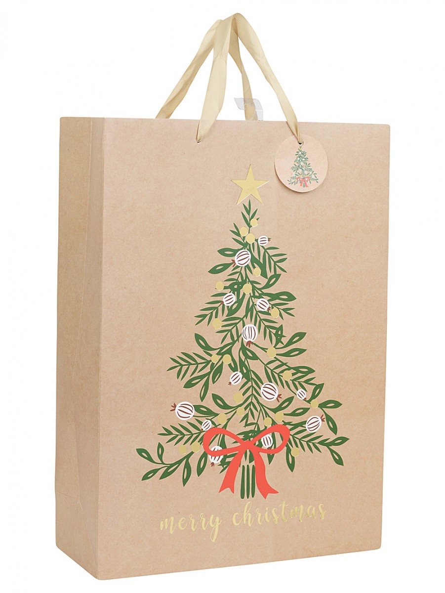 This large-size gift bag with natural with white, green, gold and red colours is the perfect way to present gifts beautifully without breaking a sweat wrapping each one individually.