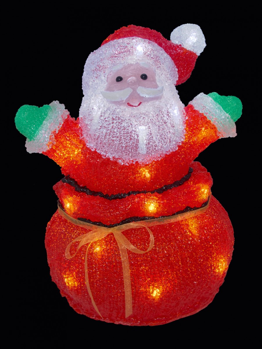 Santa is famous for working all year long with his elves in the North Pole making toys and presents for children of all ages. When Christmas Eve finally rolls around, he loads up his sleigh, hitches up his reindeer, and flies off around the world delivering his gifts. This year, it might be Santa himself that springs from his sack of toys and goodies, and you can be sure to make this happen with our LED Santa Coming Out of Gift Bag illuminated ornament.