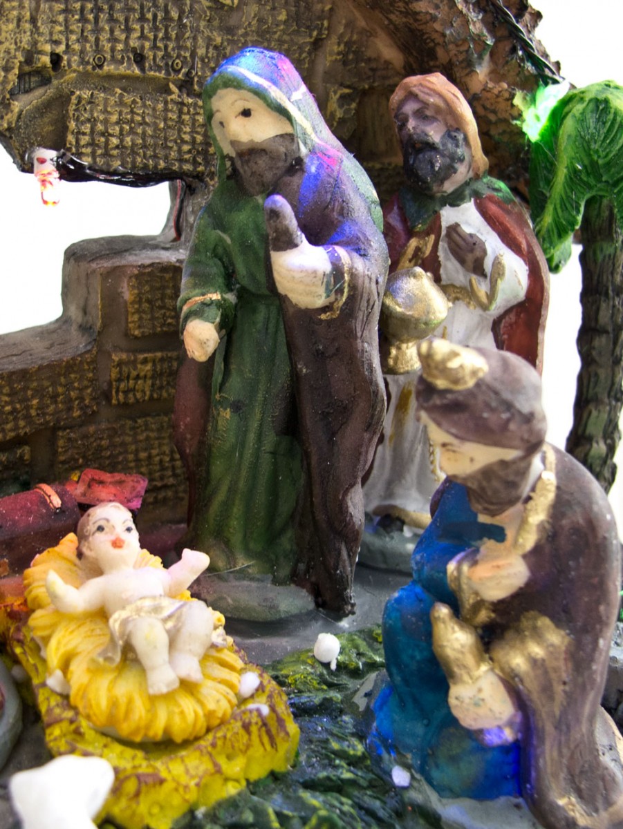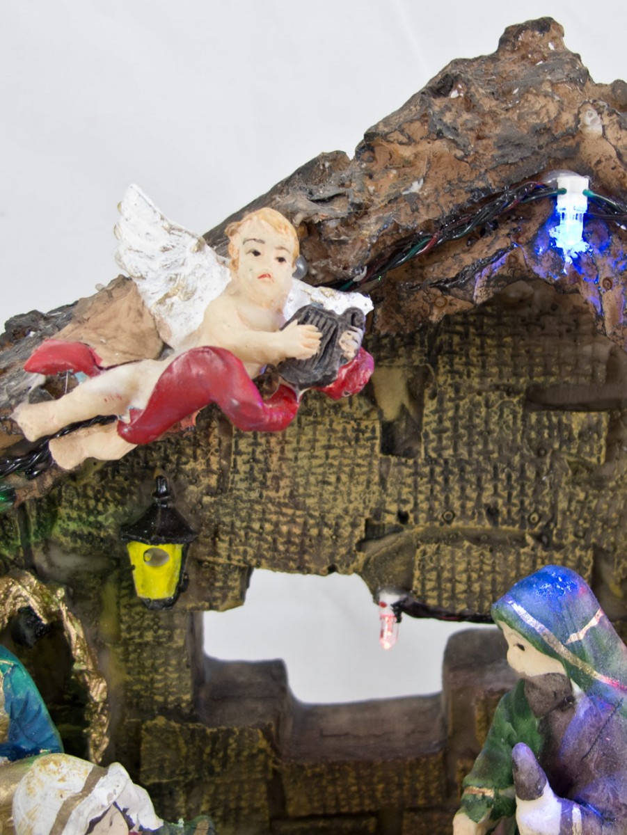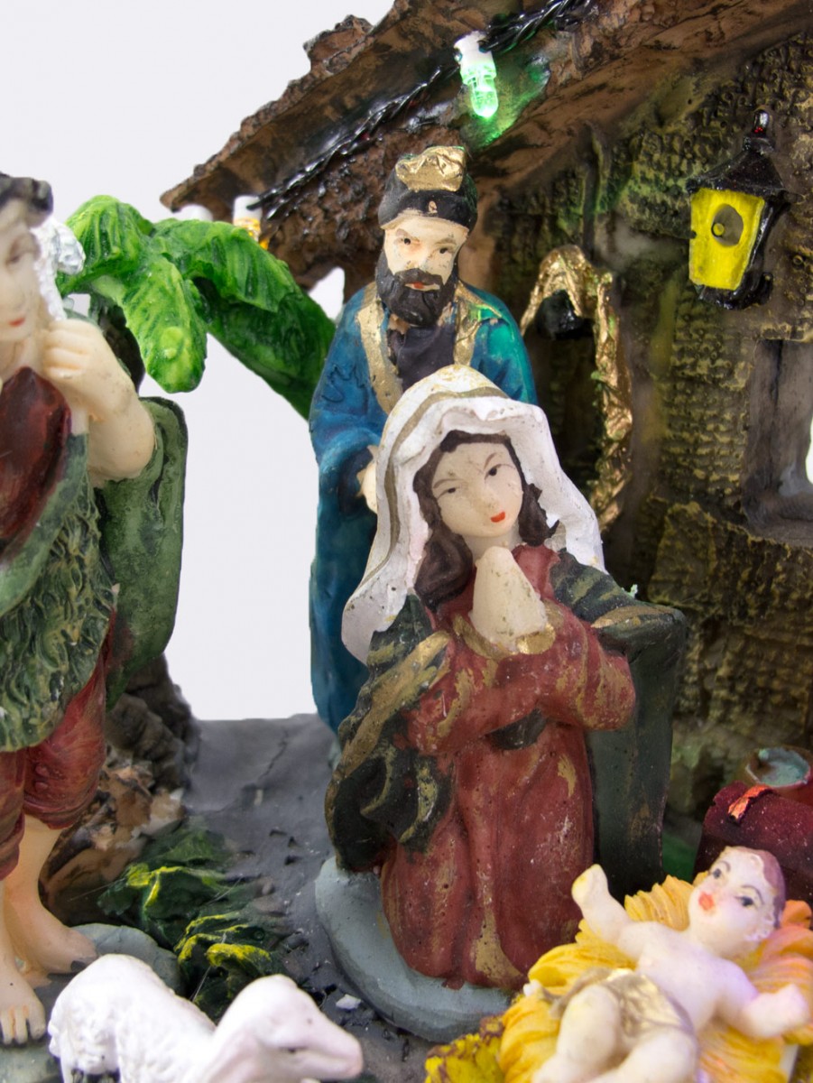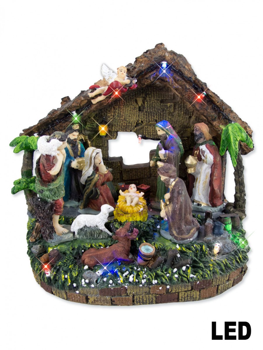 Many consider a nativity an essential part of Christmas d�cor whether it's displayed under the tree, put out as a centerpiece, placed on a table or hung on the tree as an ornament. Considering its significance, it should be beautiful and reflect the true sentiment behind the holiday. This LED Resin Manger Nativity Scene does just that. It features baby Jesus in the manger while Mary and Joseph kneel next to him on either side. The shepherd and three wise men look on from the sides as a cow and sheep lay down close by. An angel is also there, keeping a close eye from above. Multi-colored LED lights illuminate the beautiful scene. It's battery operated and runs on 3 AA batteries, which are not included. This nativity scene makes a gorgeous item to display at home or to give as a gift and it's one that almost anyone would love to have as part of their Christmas d�cor.