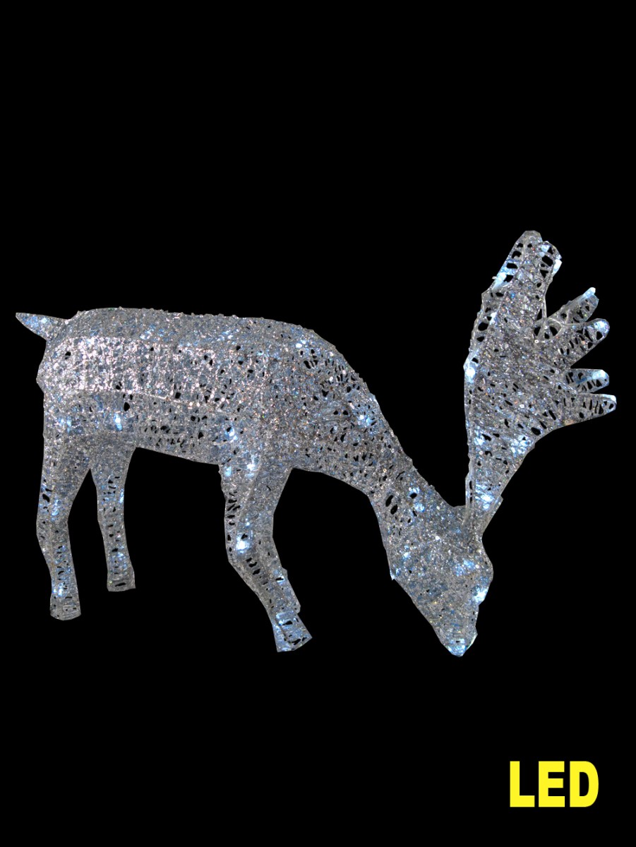 You can bring some of this awe to your own home with this beautiful LED lit reindeer. Sparkling brilliantly, this reindeer is made up of 48 white LED lights in silver mesh. LED lights tend to have a bluish hue, giving this reindeer an ethereal quality. Additionally, LED lights shine brighter than incandescent bulbs and are more energy-efficient. This reindeer is intended for indoor use, and measuring 52cm x 37cm x 13cm, it would fit nicely on a table or buffet, or standing alone on the floor to greet your guests. The reindeer is posed realistically in a grazing position and is sure to charm any visitors. With this sparkling gleam, this reindeer is a fabulous accent for any classy and sophisticated party. The elegance of the deer will shine forth against a backdrop of chic and stylish decoration. To find more indoor decorating pieces like this LED reindeer, please explore the other offerings from the Christmas Warehouse. The Christmas Warehouse also offers lighting displays for outdoors and all other Christmas-related needs.