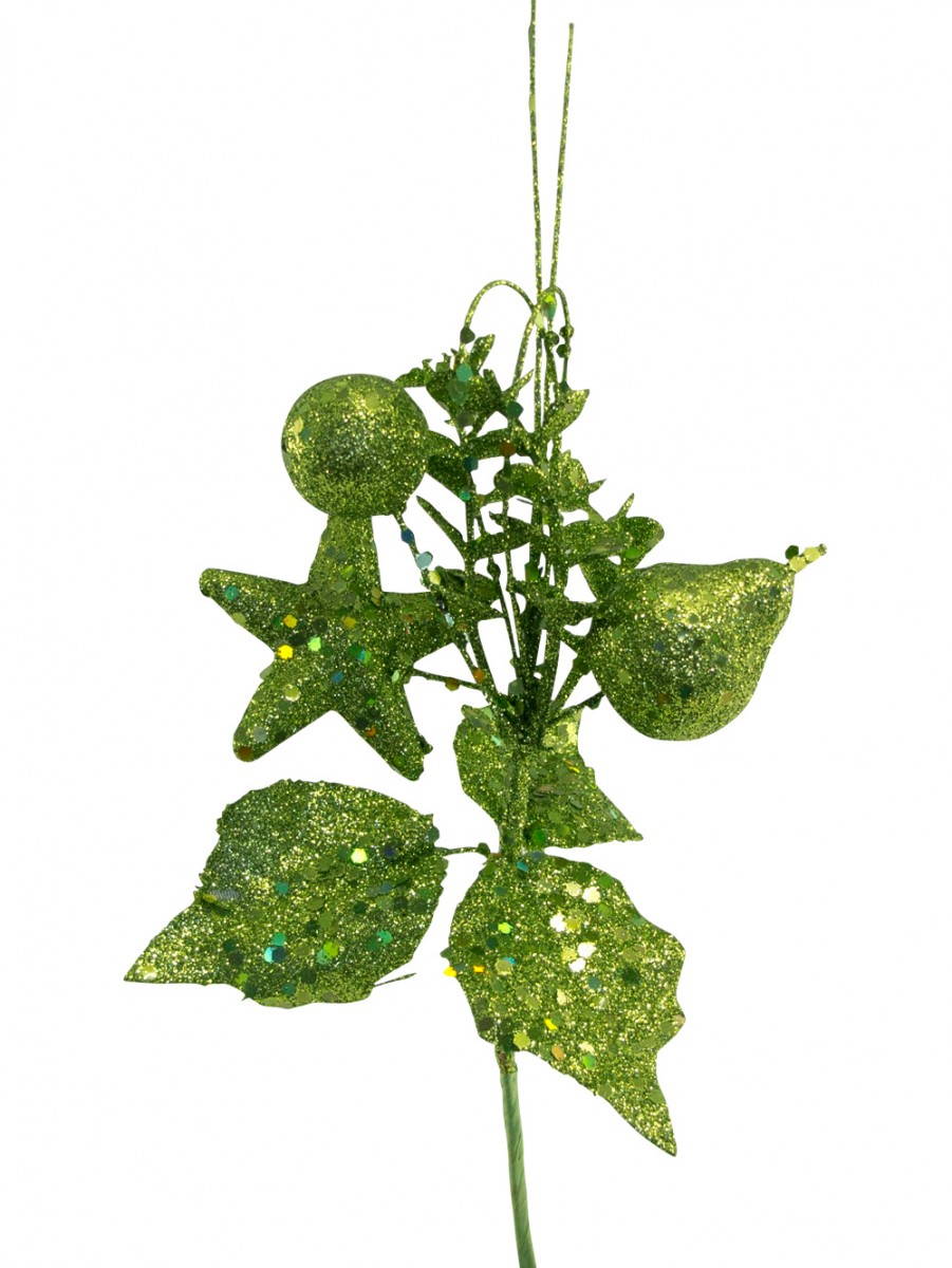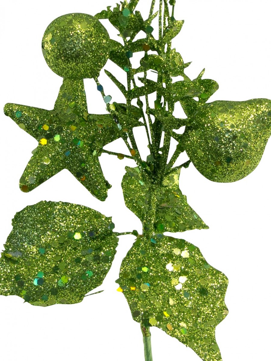 If you are looking for something to add some pizzazz to a pre bought arrangement, or if you prefer to put together your own centrepieces, this type of decorative Christmas pick is ideal. This pick is sold individually, but purchase one or more for more elaborate arrangements, or mix and match several different types to create a unique Christmas centrepiece. A lime glitter- and sequin- encrusted pick is decorated with assorted embellishments and baubles. This pick can complement a variety of settings- simply unpack and add to whatever part of your home needs a bit of holiday cheer! Dimensions are 14 cm x 10 cm x 30 cm.