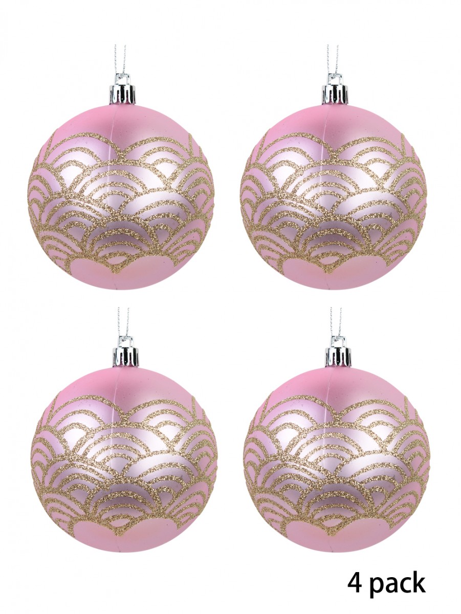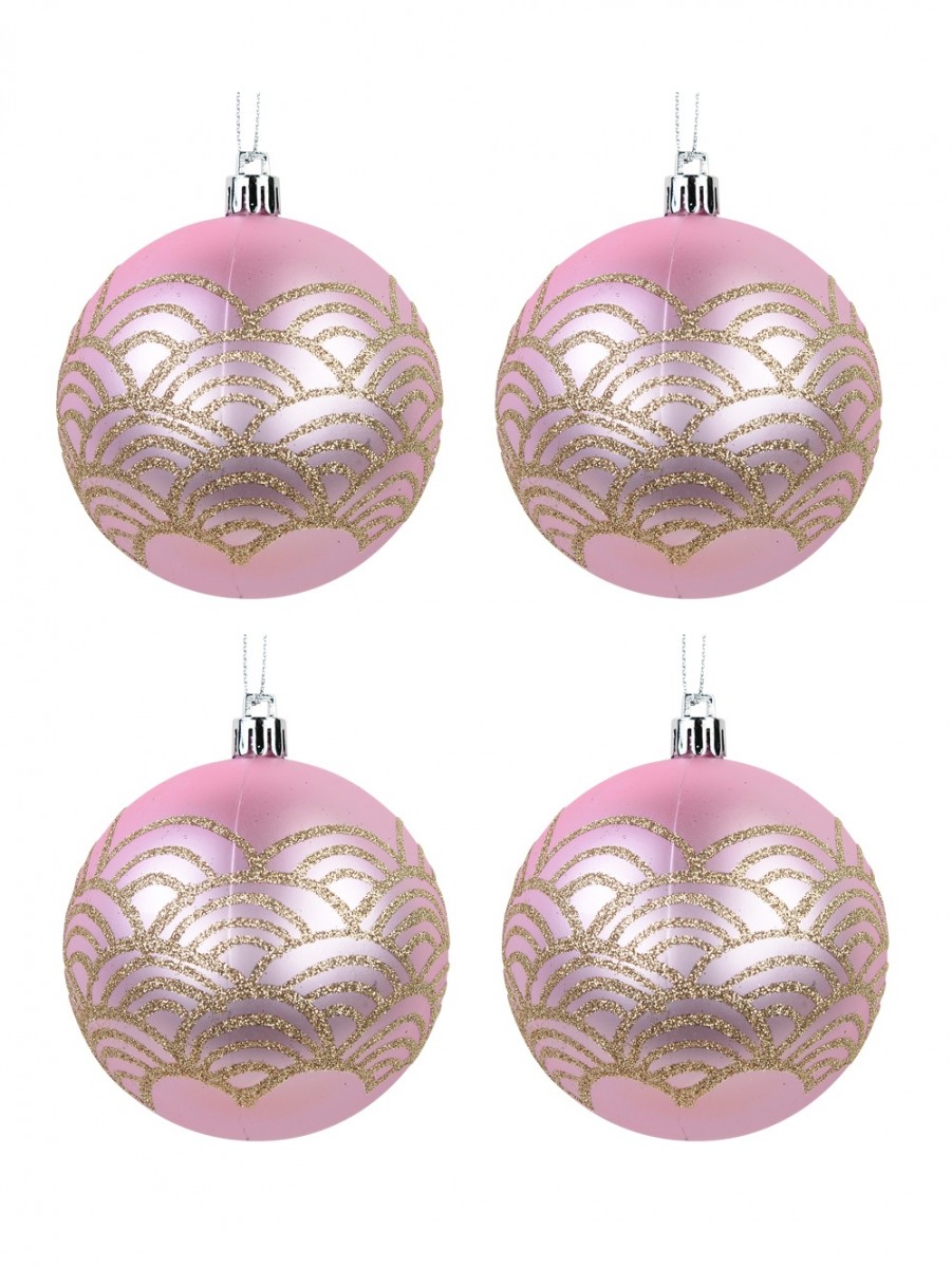 These matte soft pink and gold glitter art deco-inspired print baubles are the new trendy trinkets to add to your Christmas collection this season. You can easily hang them to shine on your Xmas tree branch or on your outdoor trees or shrubbery to fill your garden with a luminous glow and festive cheer!
