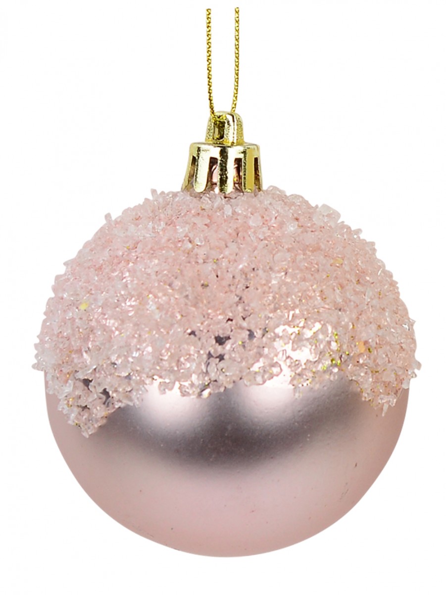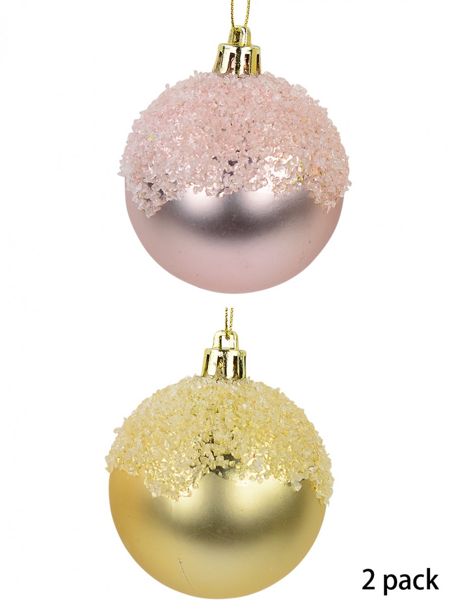 You will be surprised at how real the frosted look of these gorgeous matte pink and matte gold baubles appears which shows they have been crafted with detail in mind! These delicately designed ornaments have embellishments which resemble small white ice crystals creating the lovely semi-frosted look that will create a wintry atmosphere wherever they are hung.
