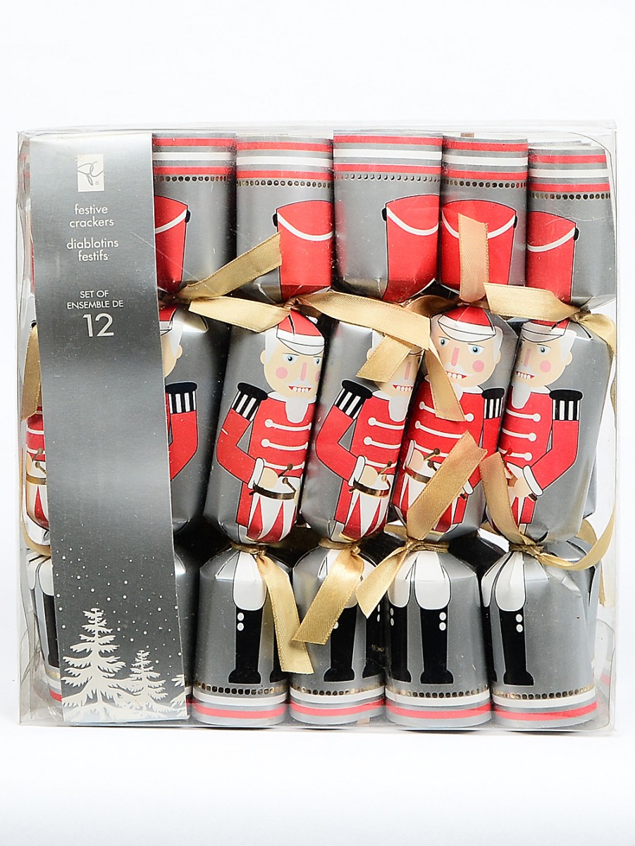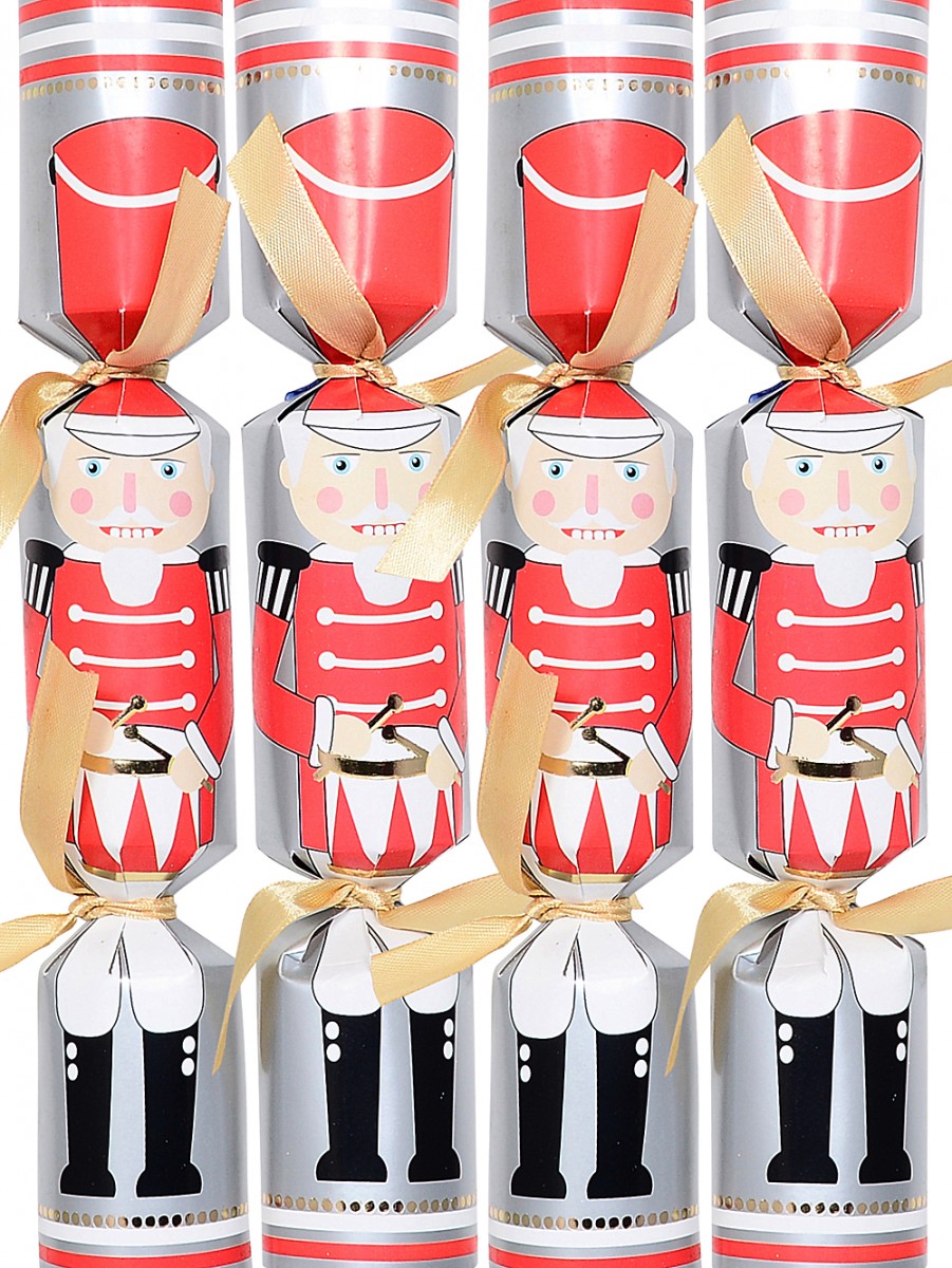 Matte Silver With Nutcracker Band Christmas Cracker Bon Bons - 12 X 25cm
