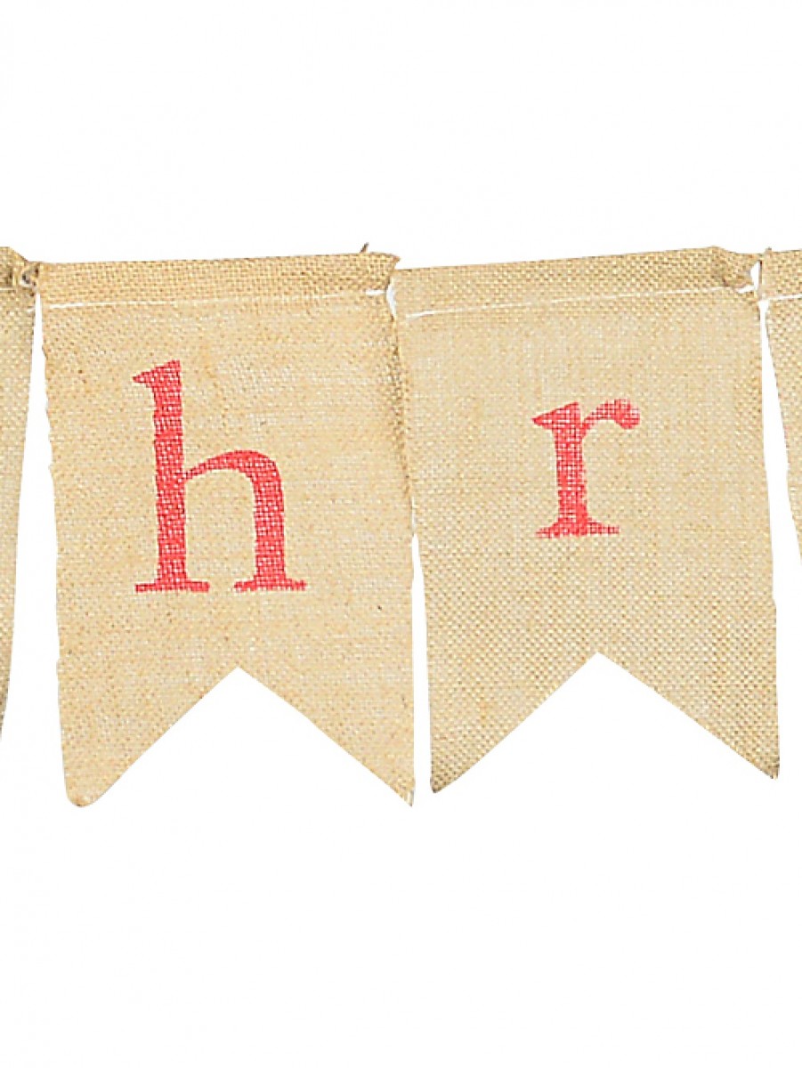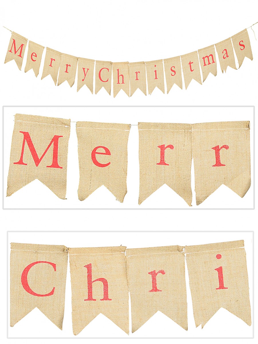 Bring warmth and charm to any room in your home! This Burlap Pennant Banner Decoration banner reads 'Merry Christmas'. Each flag carries a unique letter written in lovely red font. that makes up the complete look.