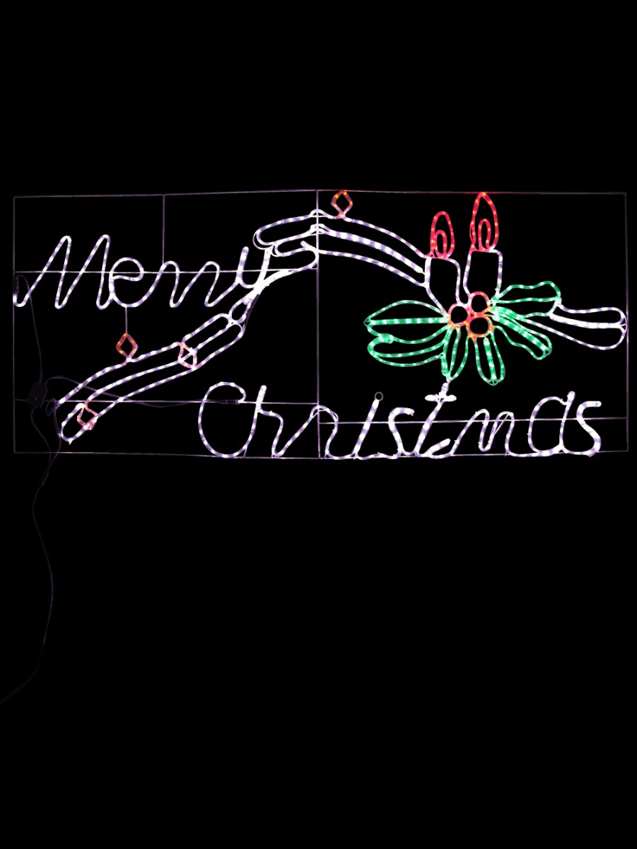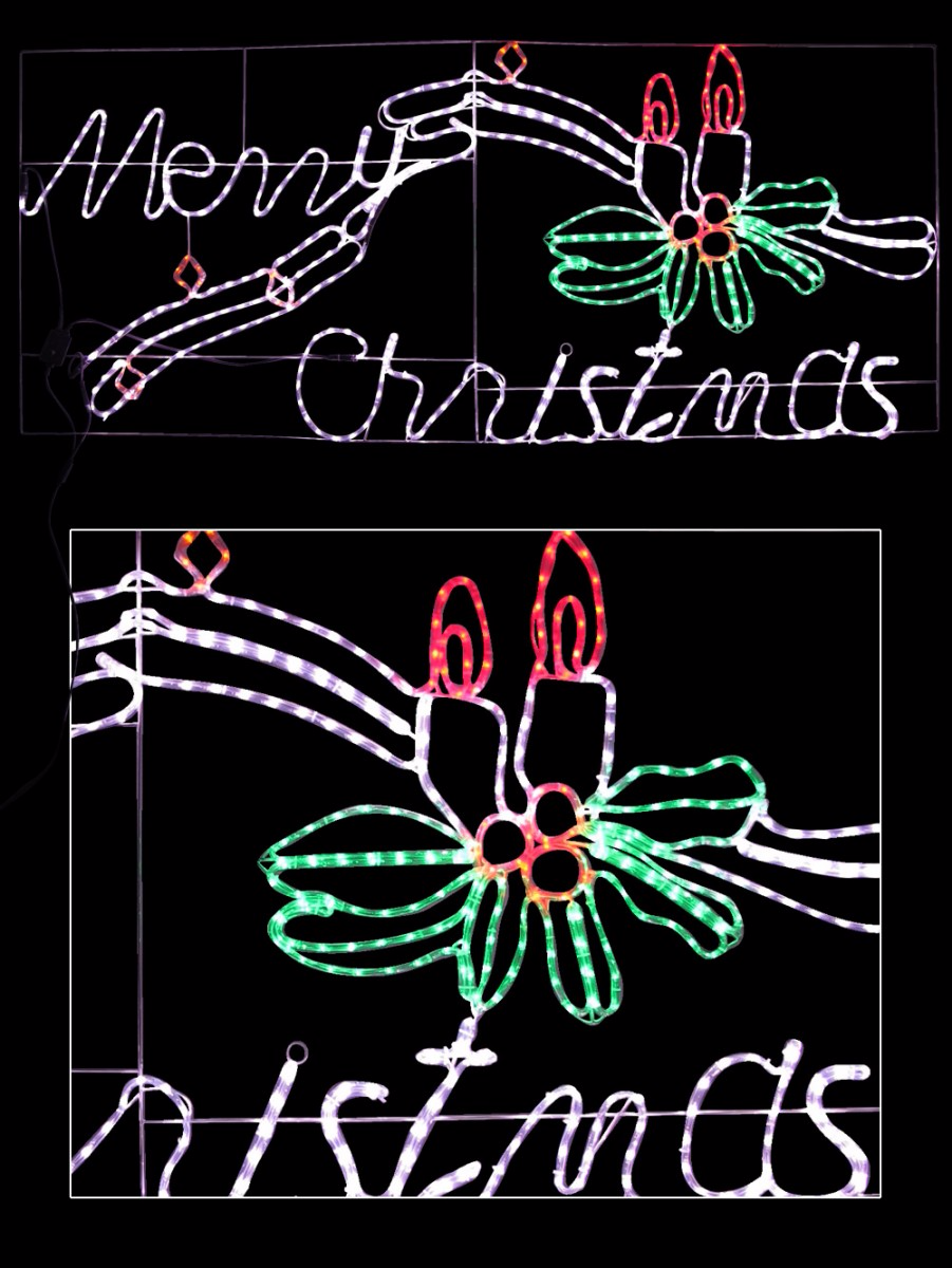 Looking for the finishing touch for your Christmas lighting set up this year? Come and check out this display! Add that spectacular flash of fun for your friends and neighbours to appreciate this year. Multi coloured LED lights spell out a cheerful 'Merry Christmas' and are accented with a candle and holly leaves. LED bulbs enclosed in a clear rope tube feature multiple different functions, which includes flashing and static mode. This lighting display measures 2.3 m x 95 cm and it includes 3 m of lead wire. Lighting display is mains operated. This product complies with all Australian safety and performance requirements.
