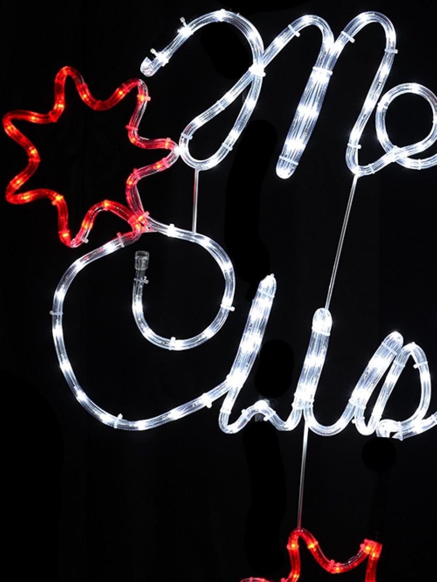 This motif is made from LED light bulbs attached to a near transparent rope tube with an overall length of 98cm and height of 92cm. There is a sufficiently long 3m lead wire attached to the BS mains operated plug making it suitable for both indoor and outdoor use. Just ensure the plug is mounted indoors or in a waterproof socket. Check out the multi-speed flashing and static functions that will help you wish Merry Christmas bright and clear! We make sure our product complies with Australian safety and performance requirements. Sold individually.