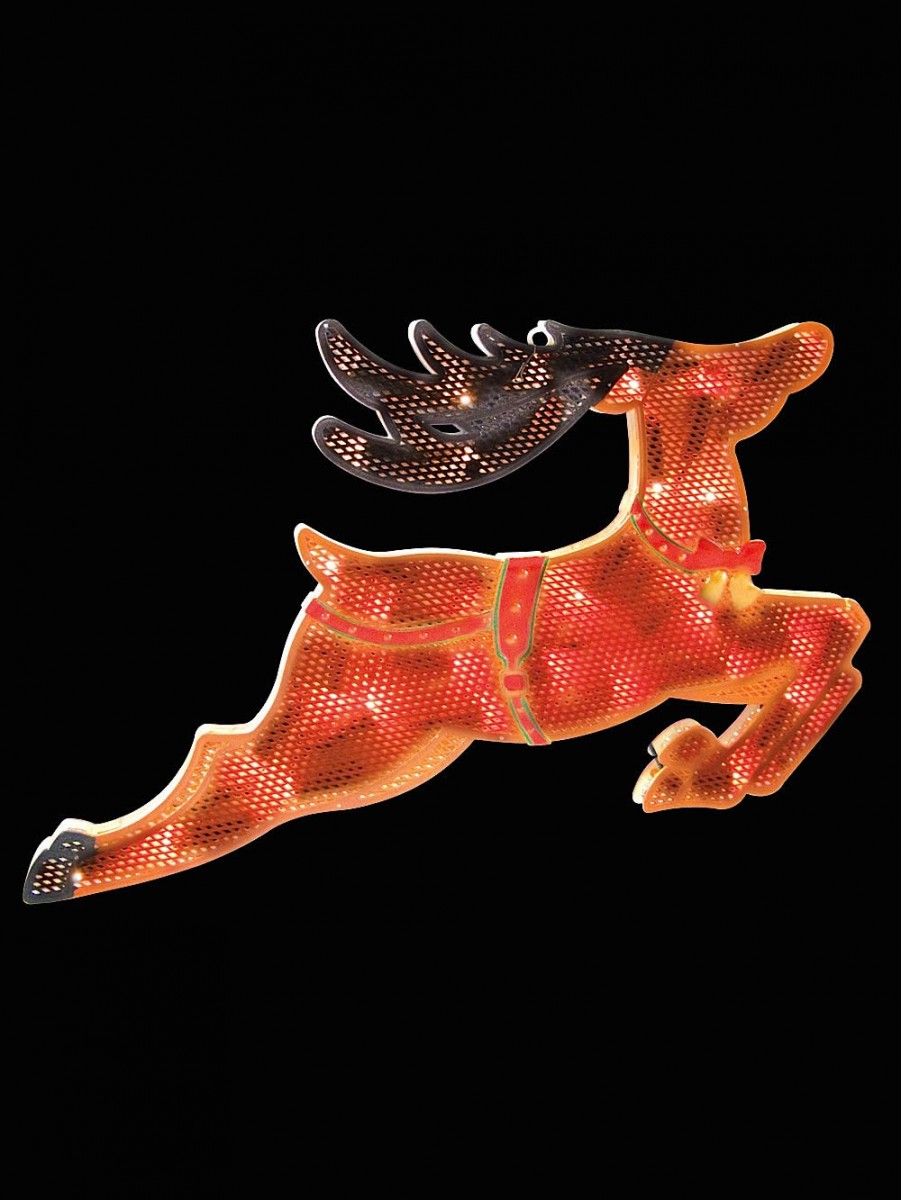 This fabulous light-up reindeer decoration is designed for indoor use. It comes with a 1.5m lead, so you will be able to hang it in a window or wall with ease. The cable is white with a standard loop configuration. There are thirty-five bulbs mounted on a mesh frame and it comes with two spare bulbs. At 45cm x 27cm, it's large enough to make a great statement without being too big to need special mountings. It runs from mains power with a total output of 24.9W. No flashing or flickering with this light either - once you switch it on, it's a static burn so you'll have a steady glow from your leaping reindeer. If you haven't ever thought about expanding your decorating scheme for Christmas, perhaps this is the year to start. This reindeer light is a great fun addition to any collection of Christmas decorations. Imagine your kids' excitement when you dim the lights and switch him on! If you have some spare time, why not come down to our store and wander through our very own Christmas wonderland? If you're planning to make Christmas extra special for someone this year, you'll find everything you need here - from Christmas lights to garlands, tinsel, wrapping paper, Christmas trees and more.