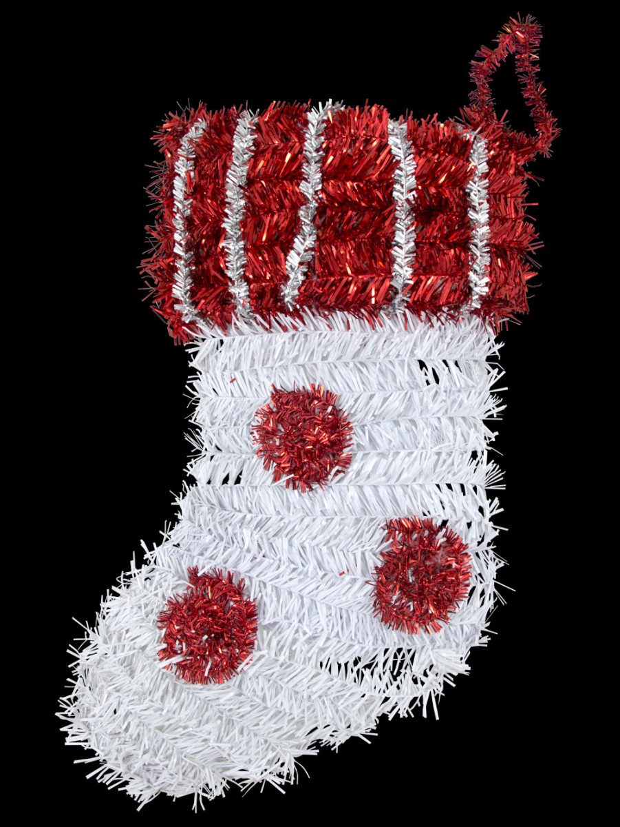 Hanging up a Christmas stocking doesn't always mean taking the traditional approach of the fluffy red and white stocking filled with goodies. This Large Foil Metallic Stocking Hanging Decoration may not be able to be filled with treats on Christmas morning, but it still looks beautiful and at 20cm, it's around the same size as its counterpart. The main part of the stocking is comprised of white metallic tinsel and red metallic tinsel polka dots. The cuff is primarily made up of red metallic tinsel with white metallic tinsel vertical stripes. A string is attached at the top so you can hang it up with ease. This item can be placed indoors or out and it will look lovely wherever it's displayed. Need more wall d‚cor that's perfect for the holidays? The Christmas Warehouse site is chock full of any type you could desire.