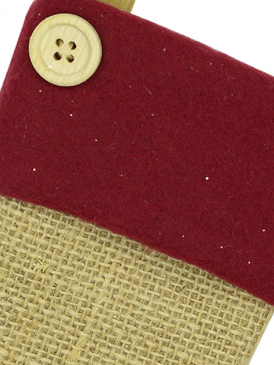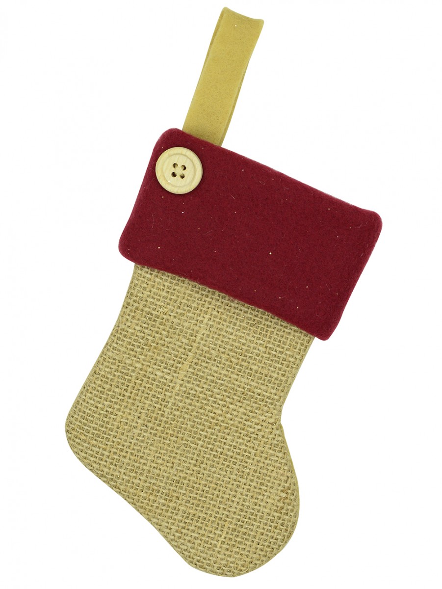 Pastorally-inspired, we have replicated the look found in old grain mill sacks for the stocking then added Christmas colour on the cuff part which gives these stockings a perfect blend of seasonal wonderment and country-inspired holiday feel. Every piece in this pack of six has a charming simplicity with a cute beige button on the red trim and comes with a looped ribbon-like hanging string that will give it the perfect slightly tilted position on your wall, Xmas tree or mantelpiece. The burlap material paired with soft burgundy felt cuff and button give these mini stockings country splendour while also bringing the Christmas-inspired look alive!