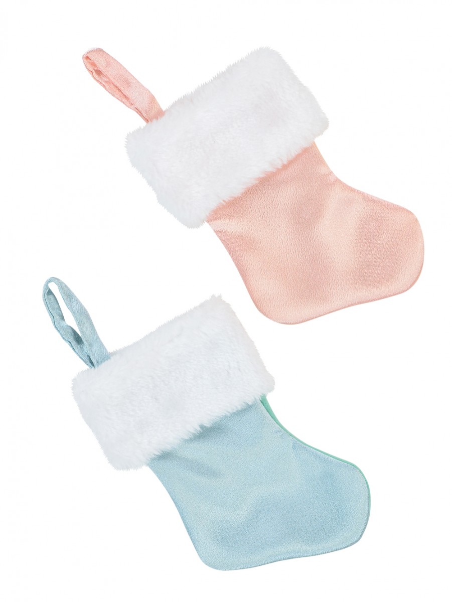The Mini Pastel Blue & Pink With White Faux Fur Cuff Stocking Decorations - 4 x 16cm is an ornamental stocking crafted to add memorable fun to your Christmas excitement this Xmas. It has a unique decorative appeal due to its astute combination of the right material, with design and pastel colours which gives it its overall charming appeal. The stockings sport the traditional design of luxuriously furnished artificial fur cuffs which are in an immaculate white colour making it conspicuous over the pastel colours of blue or pink depending on which you choose. They are perfect for added Christmas decor look.