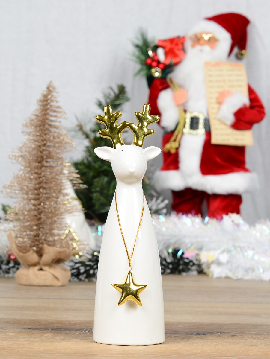 The Modern Chic Look Gloss Reindeer Ceramic Christmas Ornament is a lovely Christmas ornament that offers you greater value than your money's worth as it would be perfect way through which you can heighten spatial decor and festive excitement this coming Christmas. This ornamental Christmas reindeer figurine is made through the use of top grade ceramic material and glazed in resplendent white hue with touches of shiny