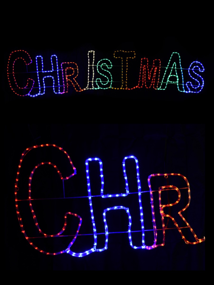 Let our Christmas Led rope light display be the physical representation of the holiday spirit, and a witness to the many cherished moments shared between families and loved ones. Its large multi-coloured variable sized letters give it a whimsical touch and the different speed flashing including static make it an attractive Christmas decoration for both domestic and retail/commercial displays.