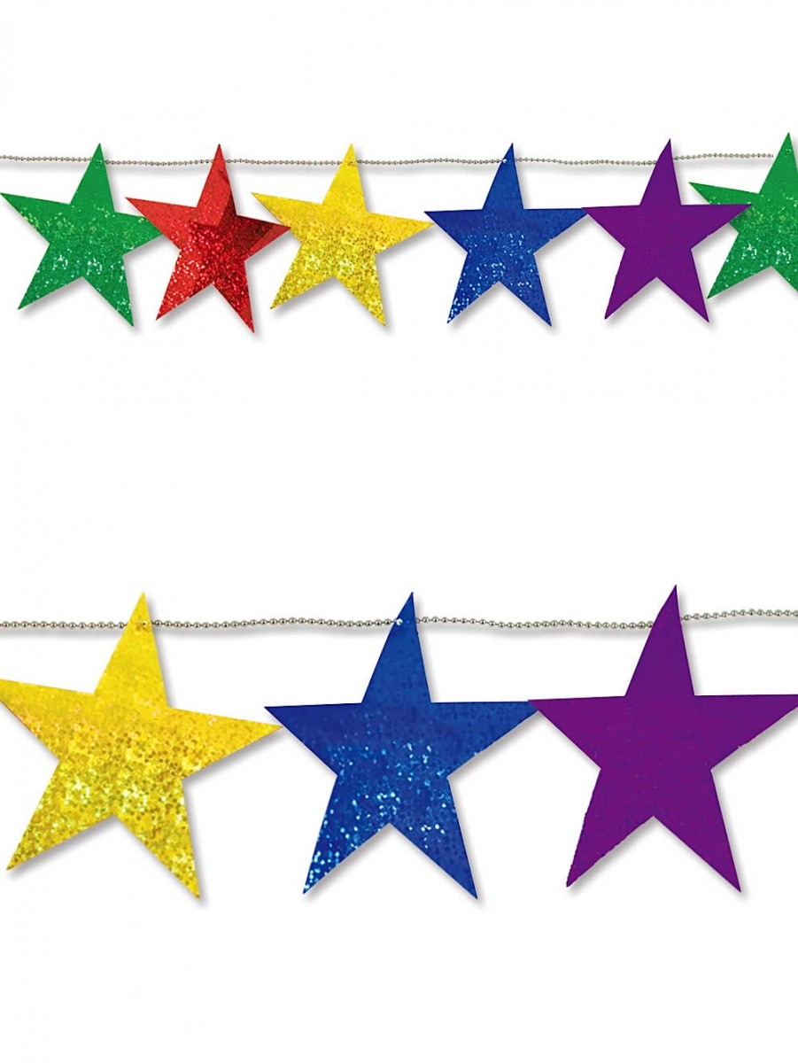 Star garlands for the yuletide season is a centrepiece in many venues for exterior or interior designs. No wonder this Metallic Star Garland is a standout! This colour-laden and eccentric Christmas accent is sure to boost and spruce up homes, workplaces and other important venues. It is undoubtedly versatile to blend with other yuletide pieces or give simple and plain spaces an instant aesthetic lift. The star accessory is made from high quality, lightweight yet durable materials. It could definitely last from one Christmas to another. The uniquely shaped stars are clustered together to form a 2.7m measurement for each garland. This multi coloured ornament could be easily hanged anywhere from walls, doors and so much more. There are various lovely and lively palettes presented in one festive garland. Available colours for the lot include deep green, fiery red, yellow, deep blue and purple. All stars have the shiny and glittery effect.