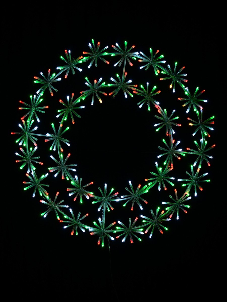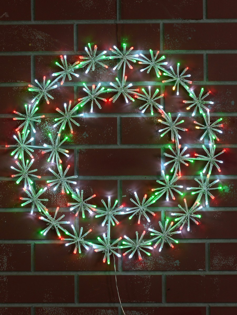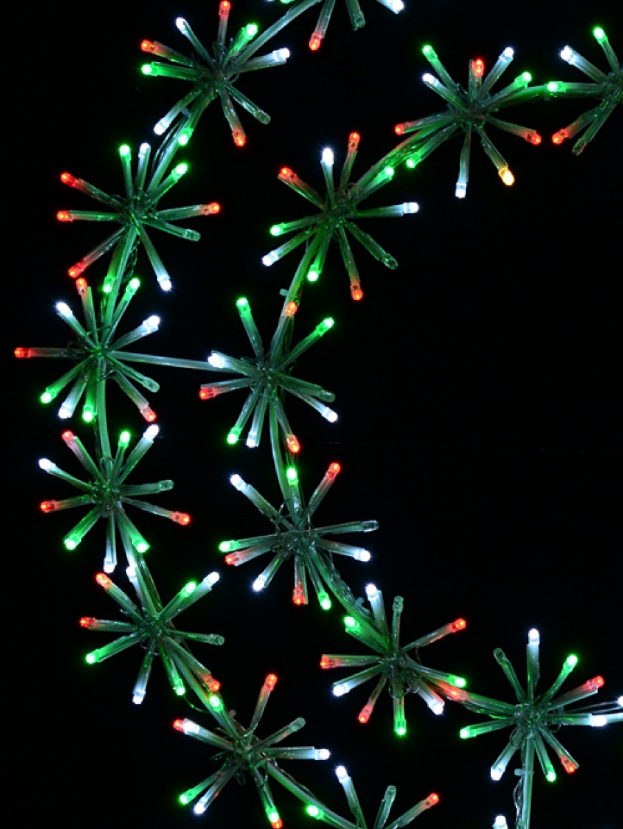 If you like to blend in some modernity to tradition, then this starburst branches light display is the perfect Christmas decorative light for you. This string light uses 32 LED light starburst branches to create a unique look. Each starburst branch has 10 LED light bulbs, creating a total of 320 bulbs, 32 of which are warm white and the rest are a combination of red, green and bluish-white static lights. Each bulb on each starburst is placed at an equal distance of 10 cm from one another, providing uniform illumination. This wreath can be hung anywhere, thanks to a mounted frame that allows for easy display. Get this fancy light wreath that can replace your everyday traditional wreath, bringing a multipurpose bright and colourful light display to your home with a twist of modernity.