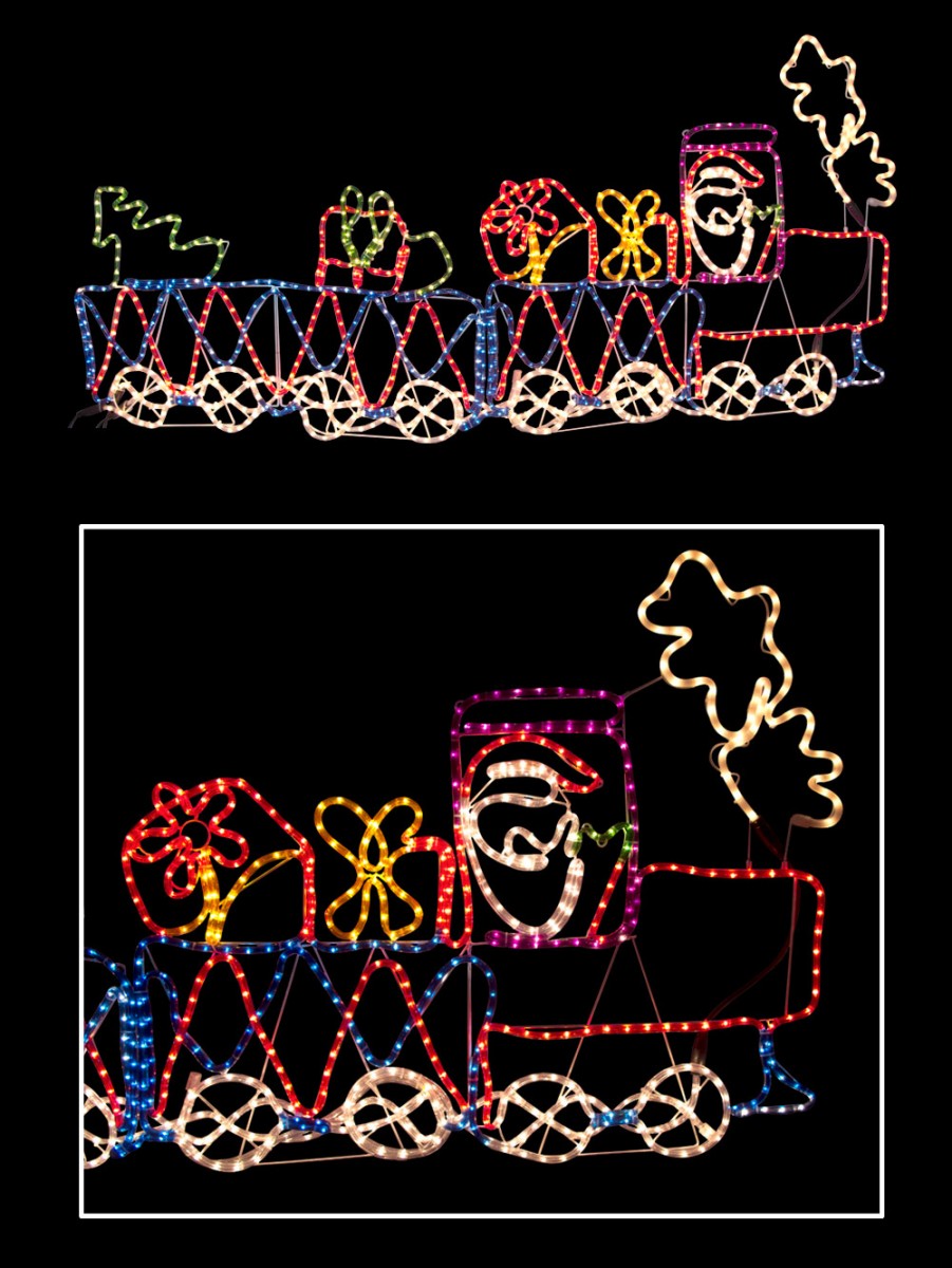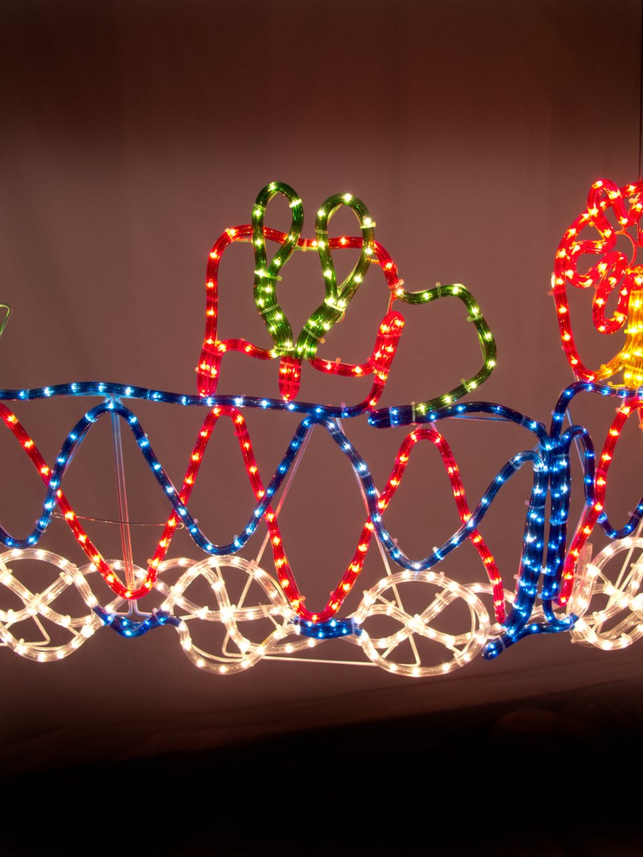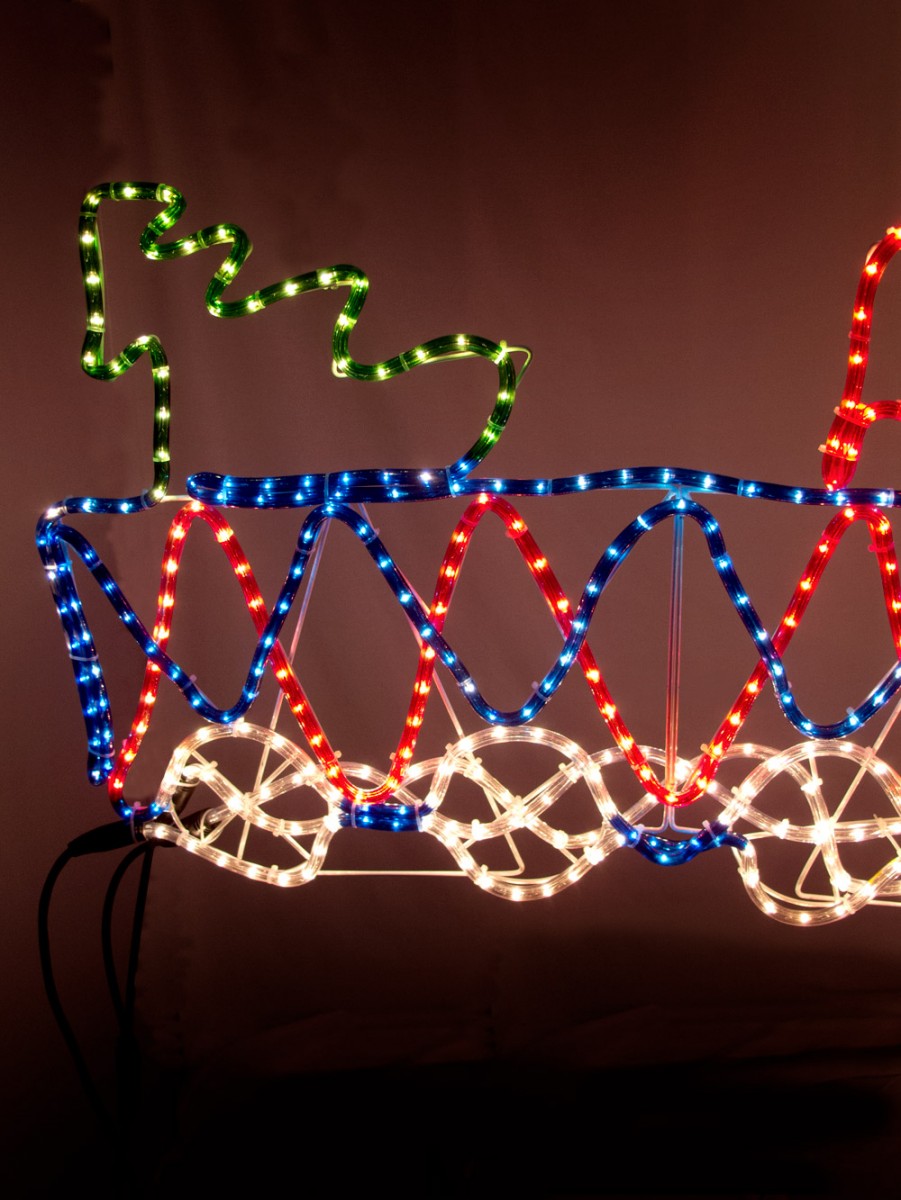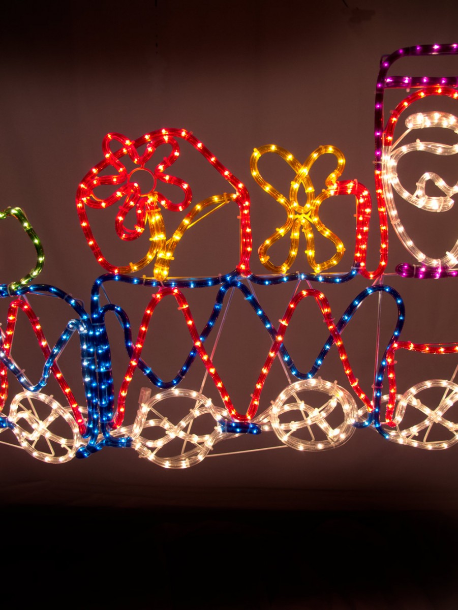 Trains have a significant history associated with the joy of Christmas, and at almost 6 feet long and 3 feet high, our Multicolor Train and Three Carriages will make a grand impression on your neighborhood and an exciting presentation when displayed alone or when added to your other illuminated ornaments.