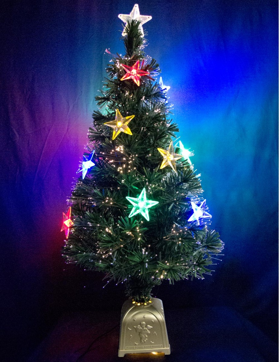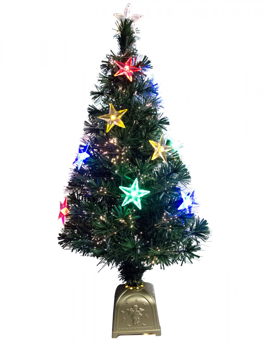 Fibre optic Christmas trees are pre-lit and brilliant. This tree stands 120cm tall. It is large enough to make a bold statement in your home, but small enough for convenience. This tree is perfect for anyone with limited space, those want the convenience of a smaller tree or for anyone seeking a second tree for their home. This fibre optic tree is detailed and advanced. From the beautiful golden base to the star on top, the tree is elegant and breath-taking. The tree features LED illuminated stars, mutliple tips and a brilliant star on top. All of these elements include the changing coloured lights of fibre optics. Plug this tree in and enjoy the self-sufficient light show. Fibre optic trees and pre-decorated and easy to assemble. Save the hassle of checking for loose bulbs and decking your tree this year by purchasing a maintenance and hassle-free fibre optic tree. The amazing lights are sure to mesmerize your friends and family and bring a bit of magic to your home. Bring the spirit of Christmas home with this fibre optic light-show tree this holiday season.