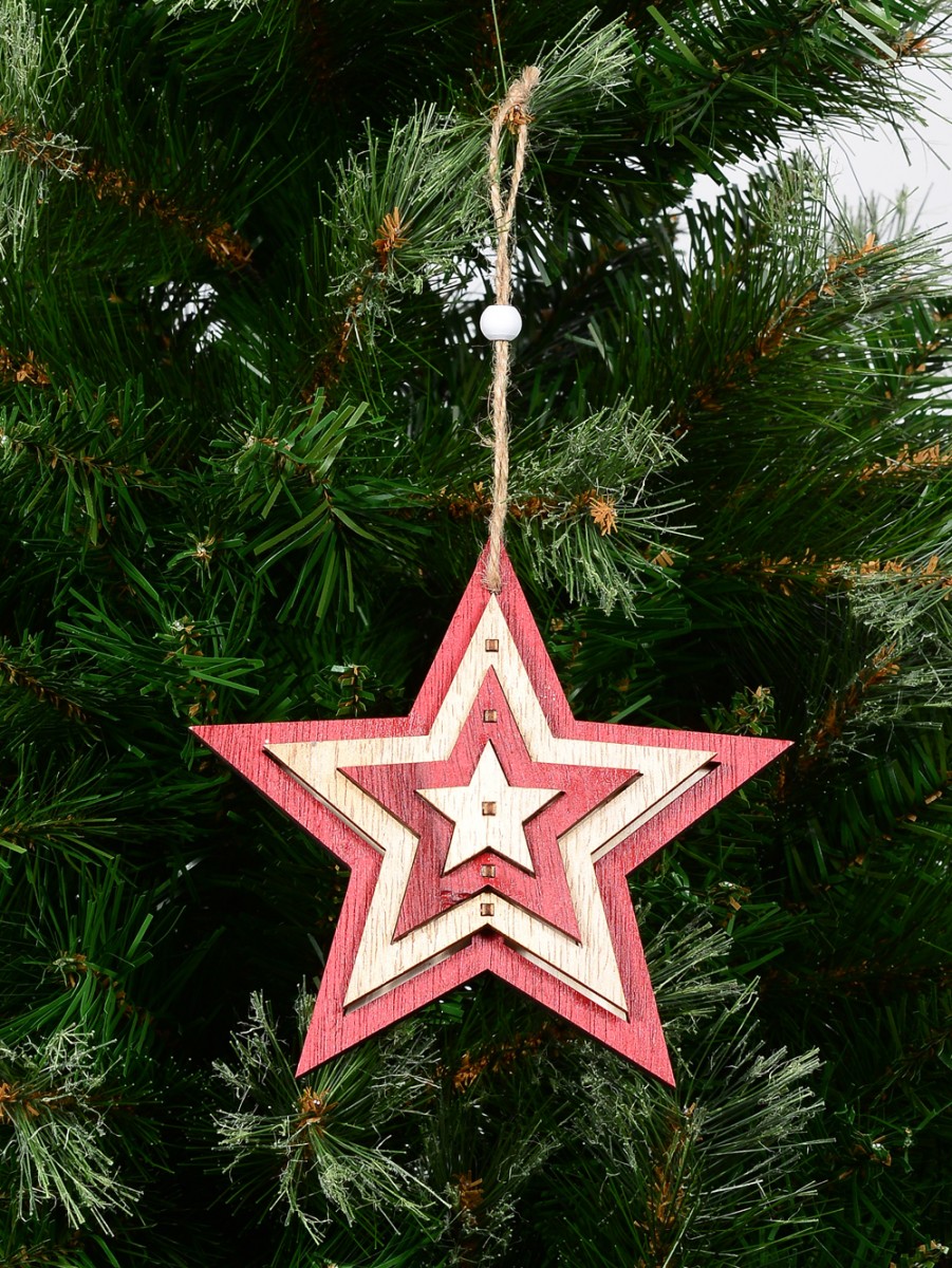 A super-cure wooden tree! The natural wooden tree has a smaller washed-white tree attached at the centre and slightly raised for great effect. The sweep jute strand ribbon and red balls finish this piece of just perfectly.